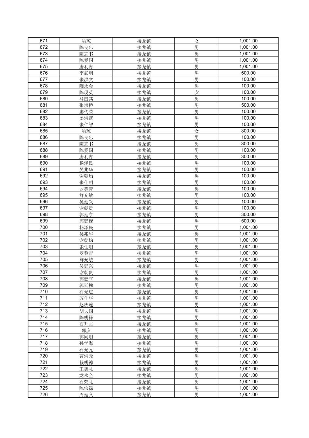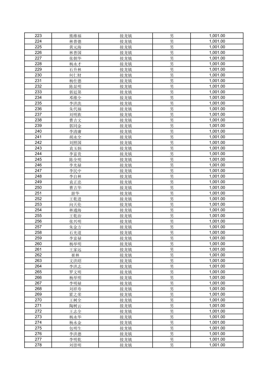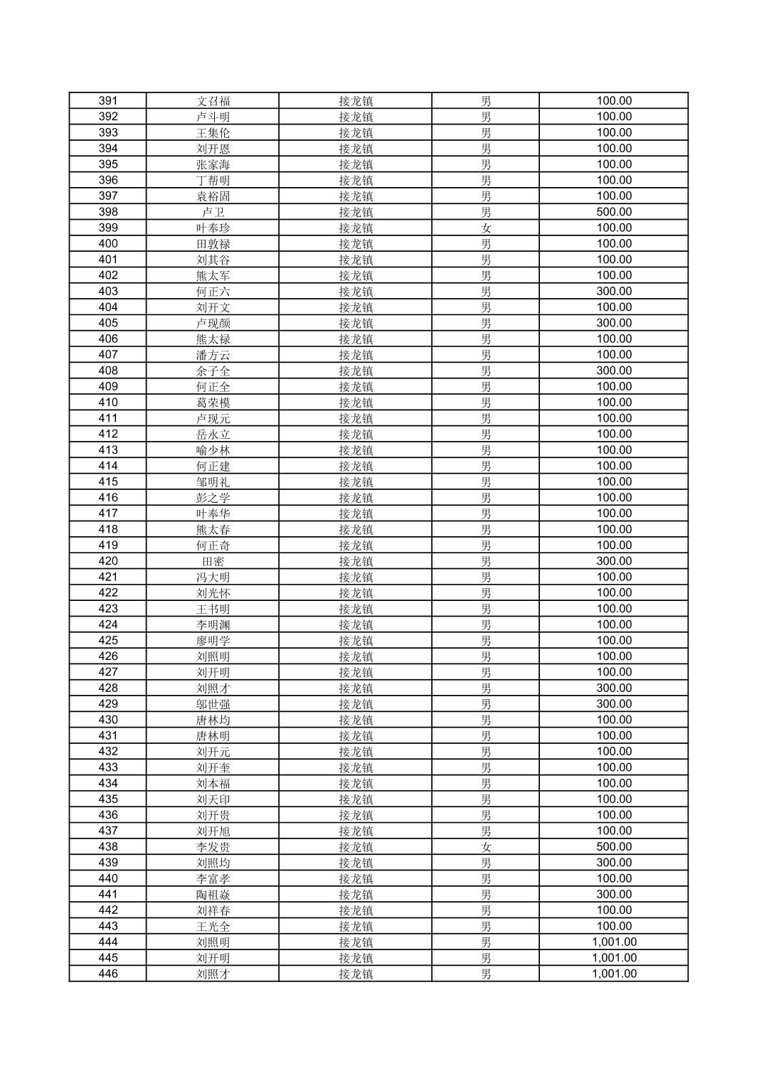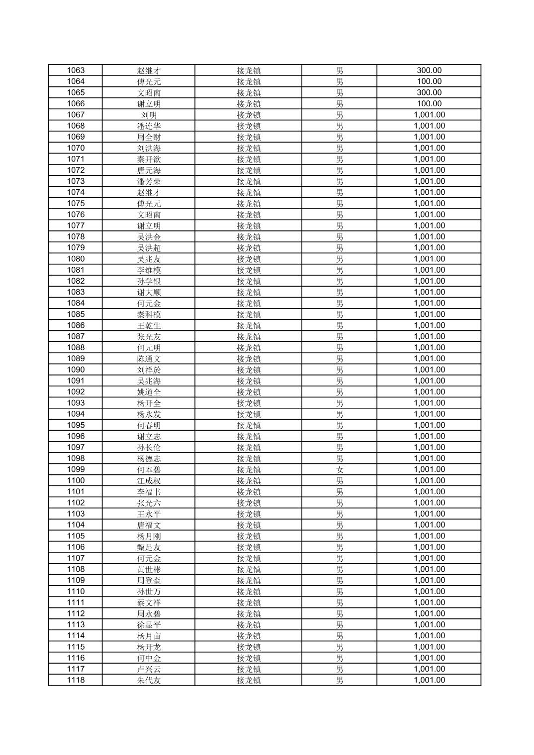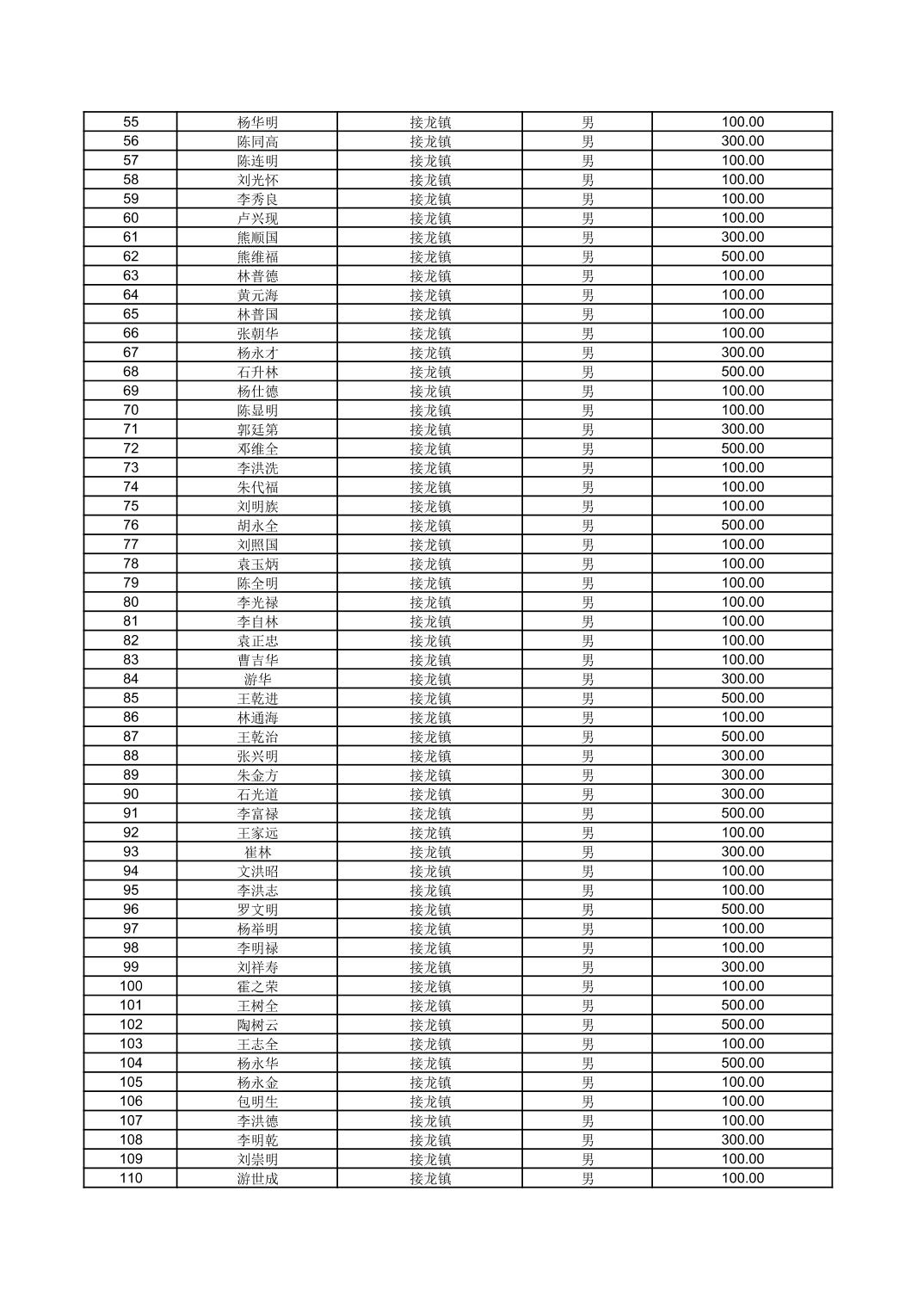 重庆市巴南区接龙镇2025年特困人员集中供养生活费发放表(9月)