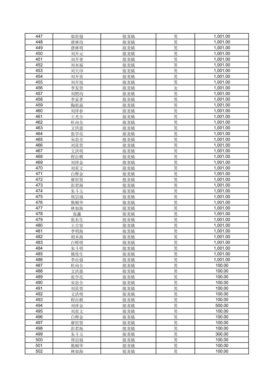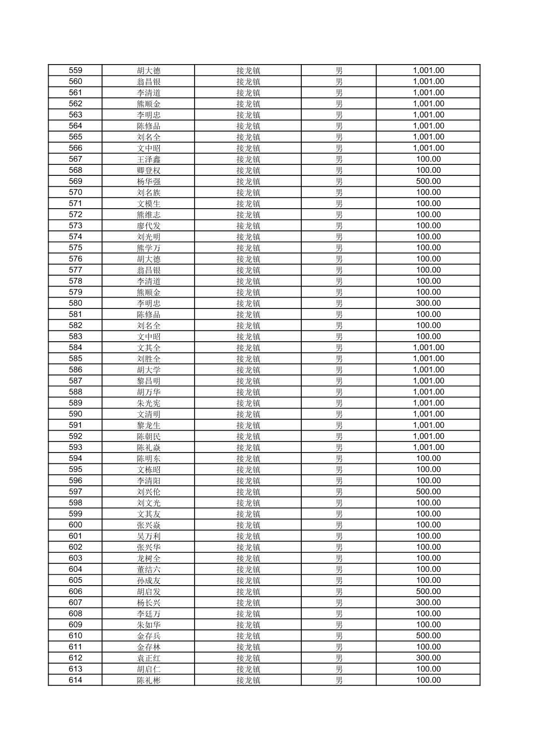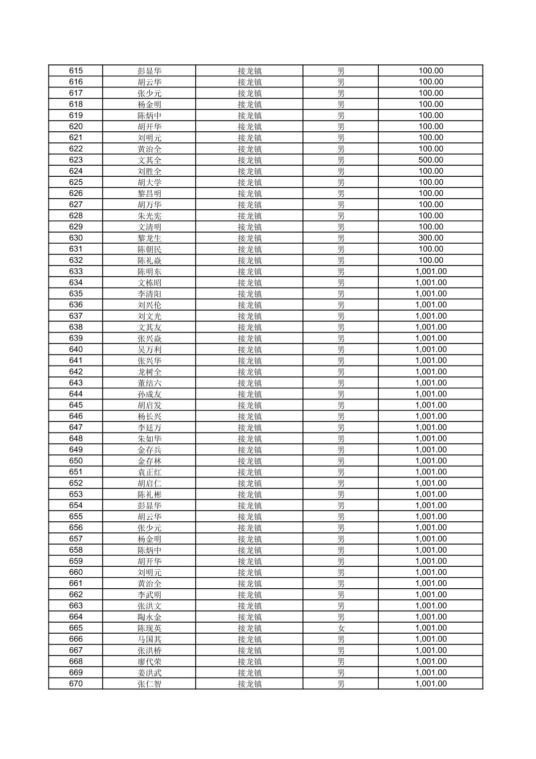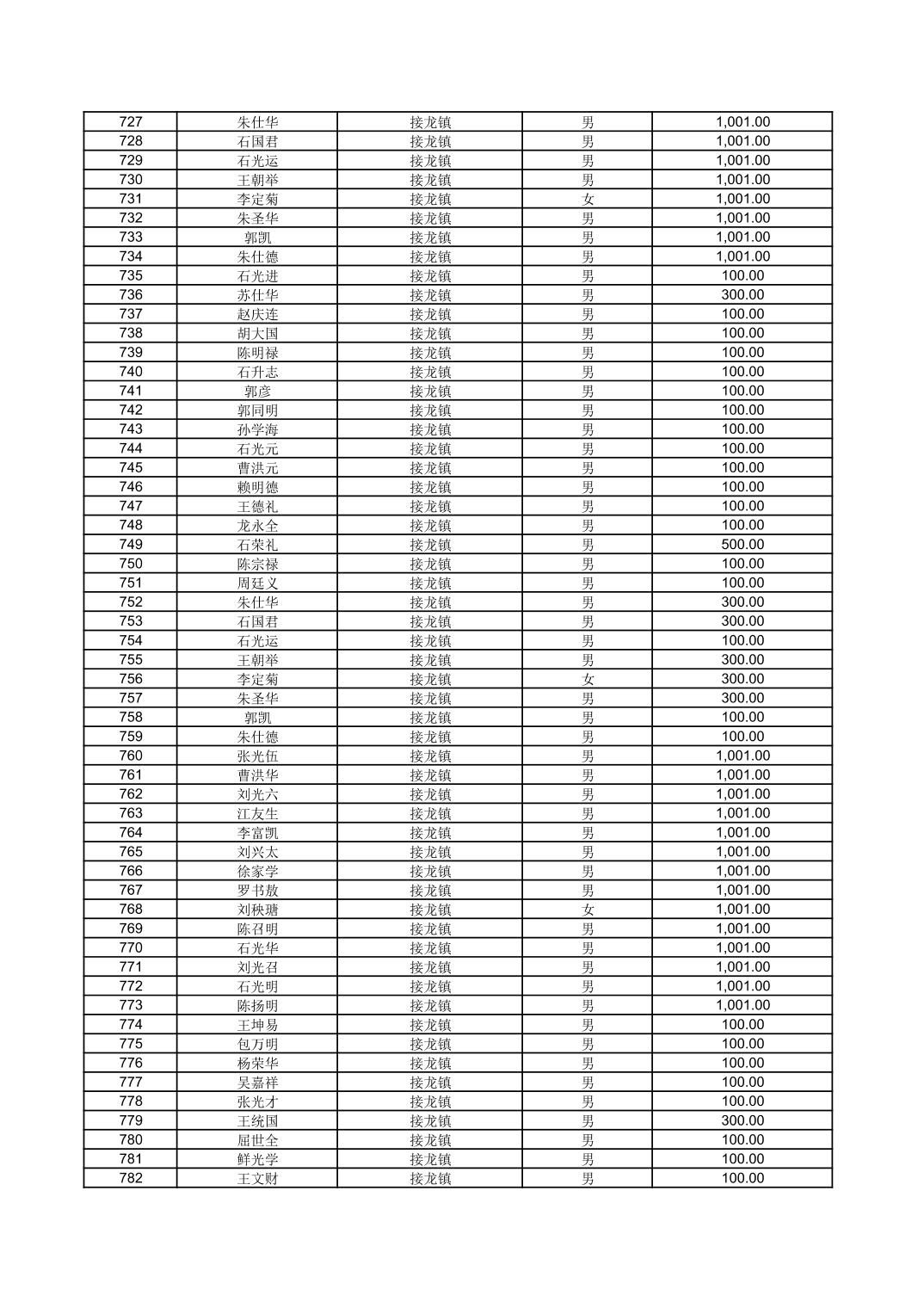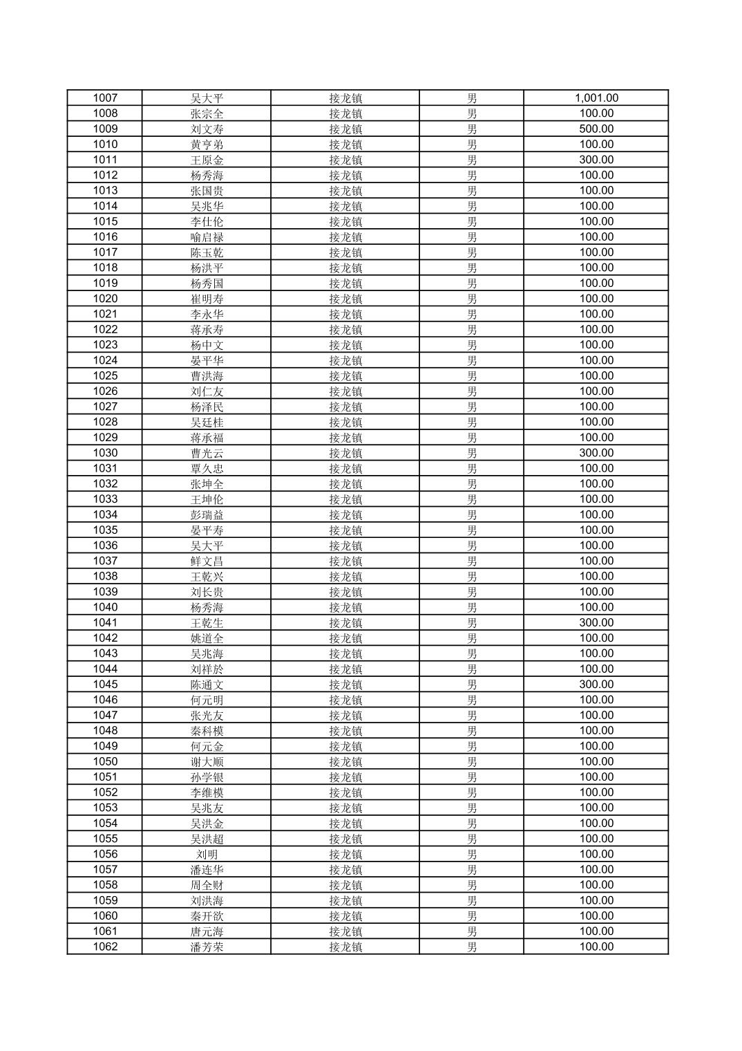 重庆市巴南区接龙镇2025年特困人员集中供养生活费发放表(9月)