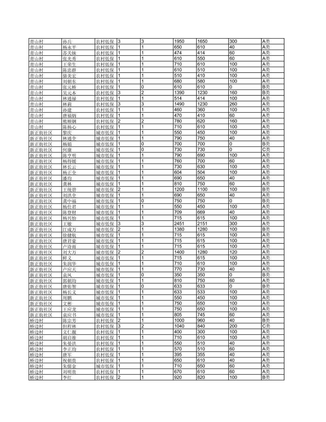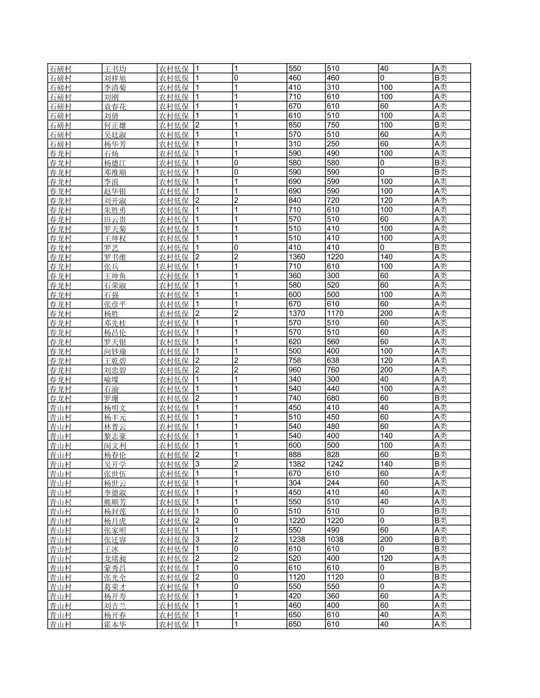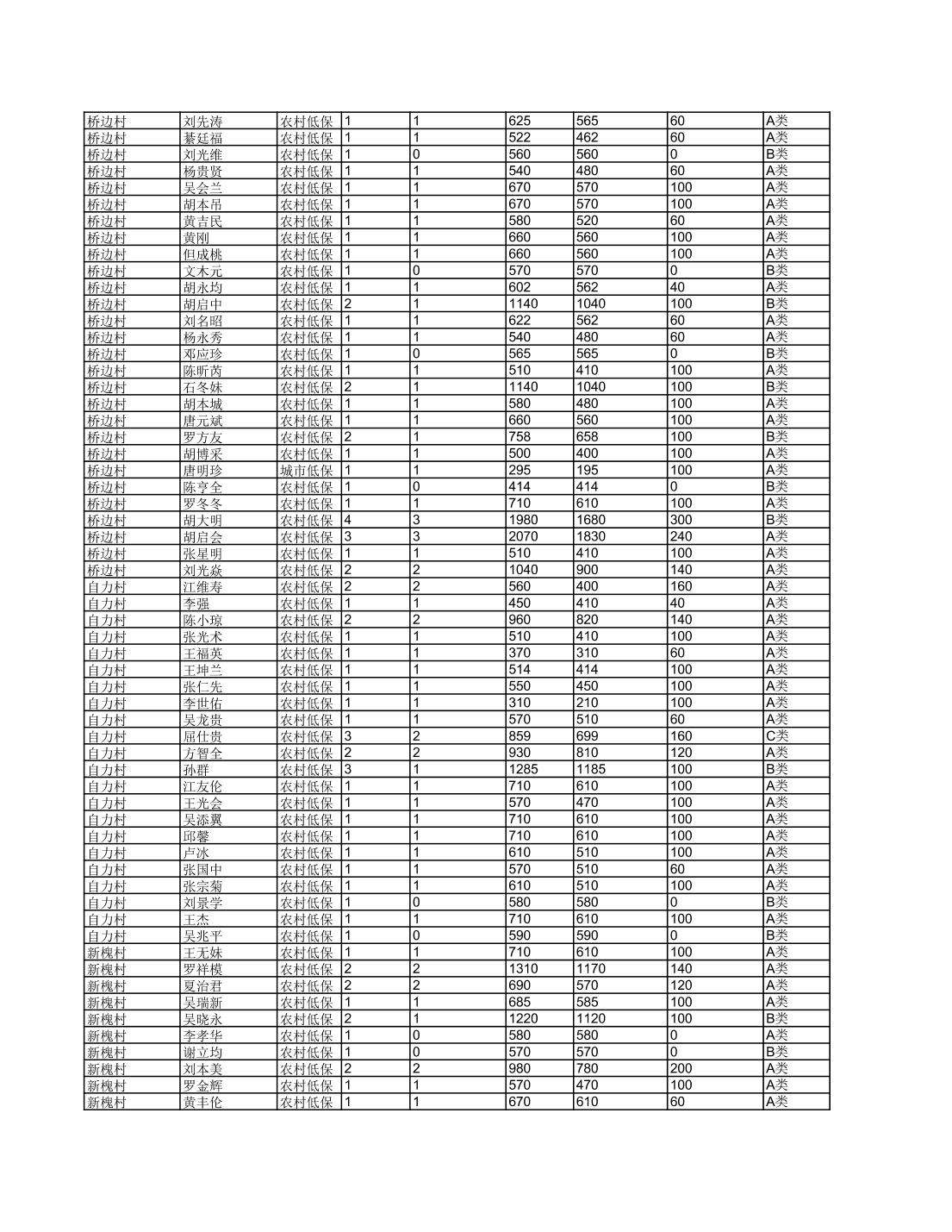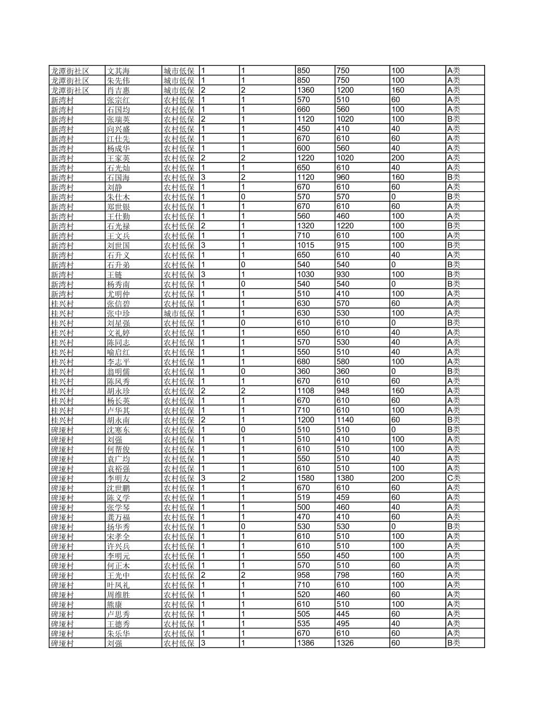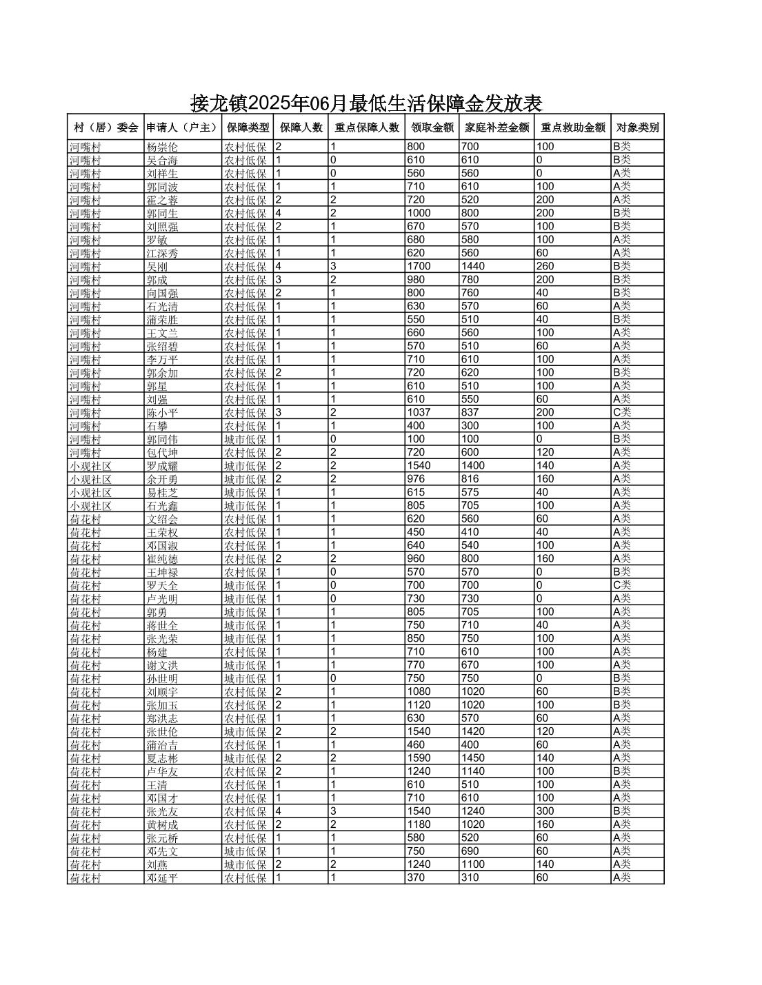 接龙镇2025年6月最低生活保障金发放表