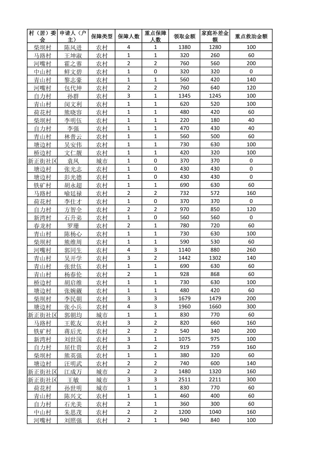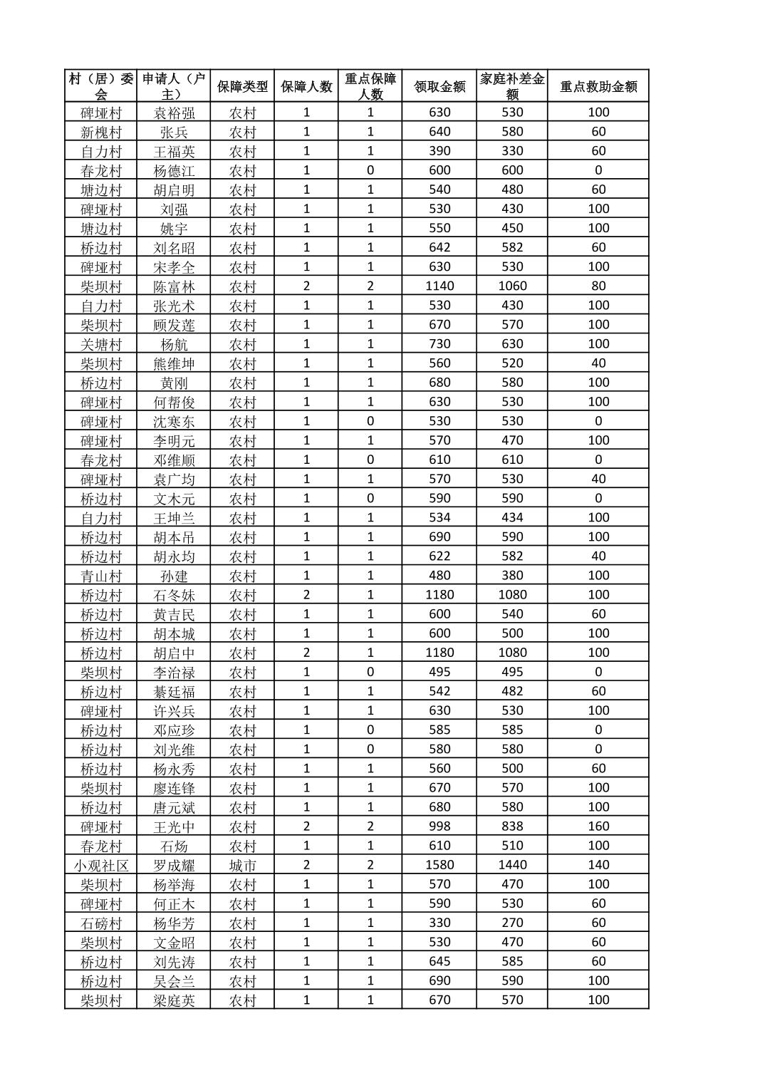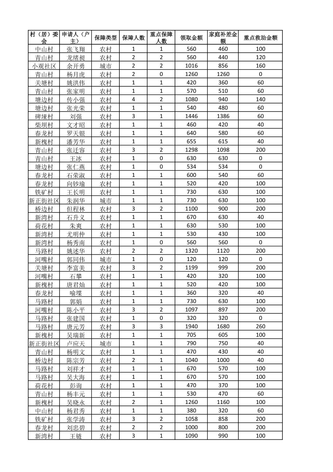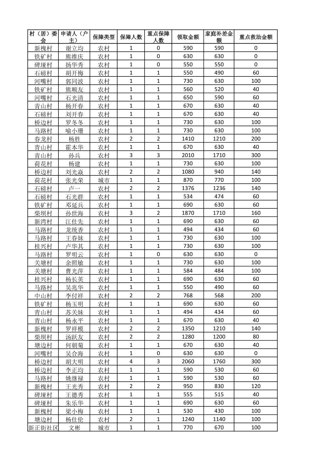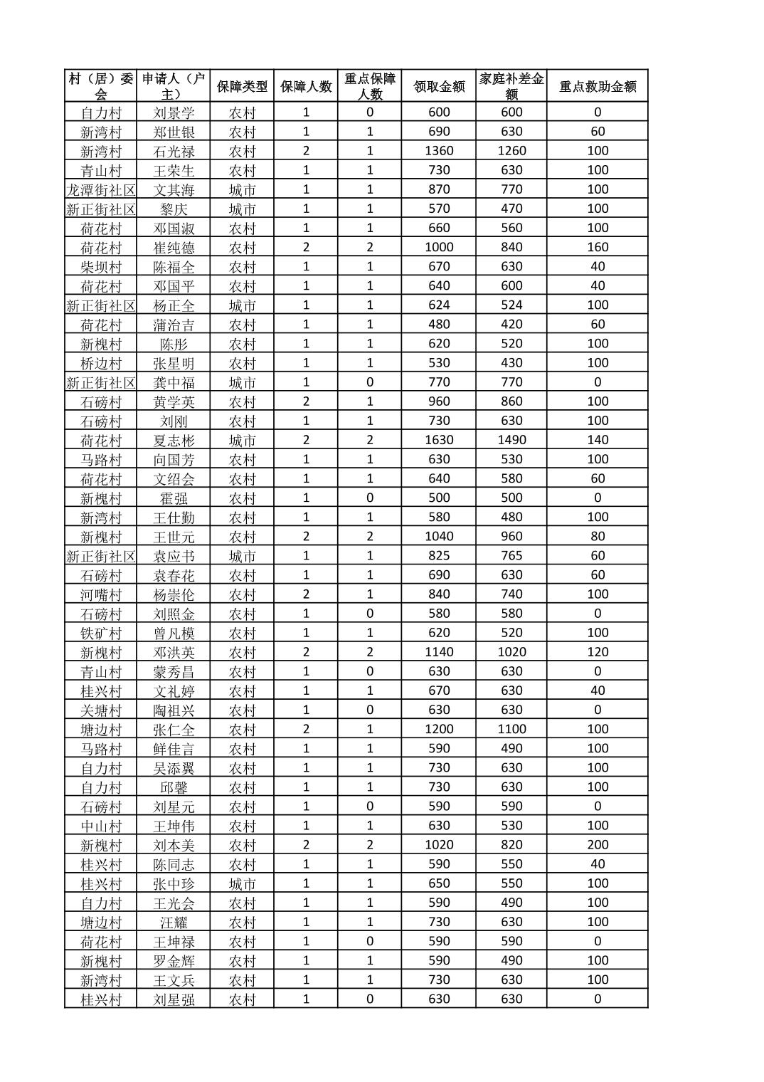接龙镇2025年8月最低生活保障金发放表