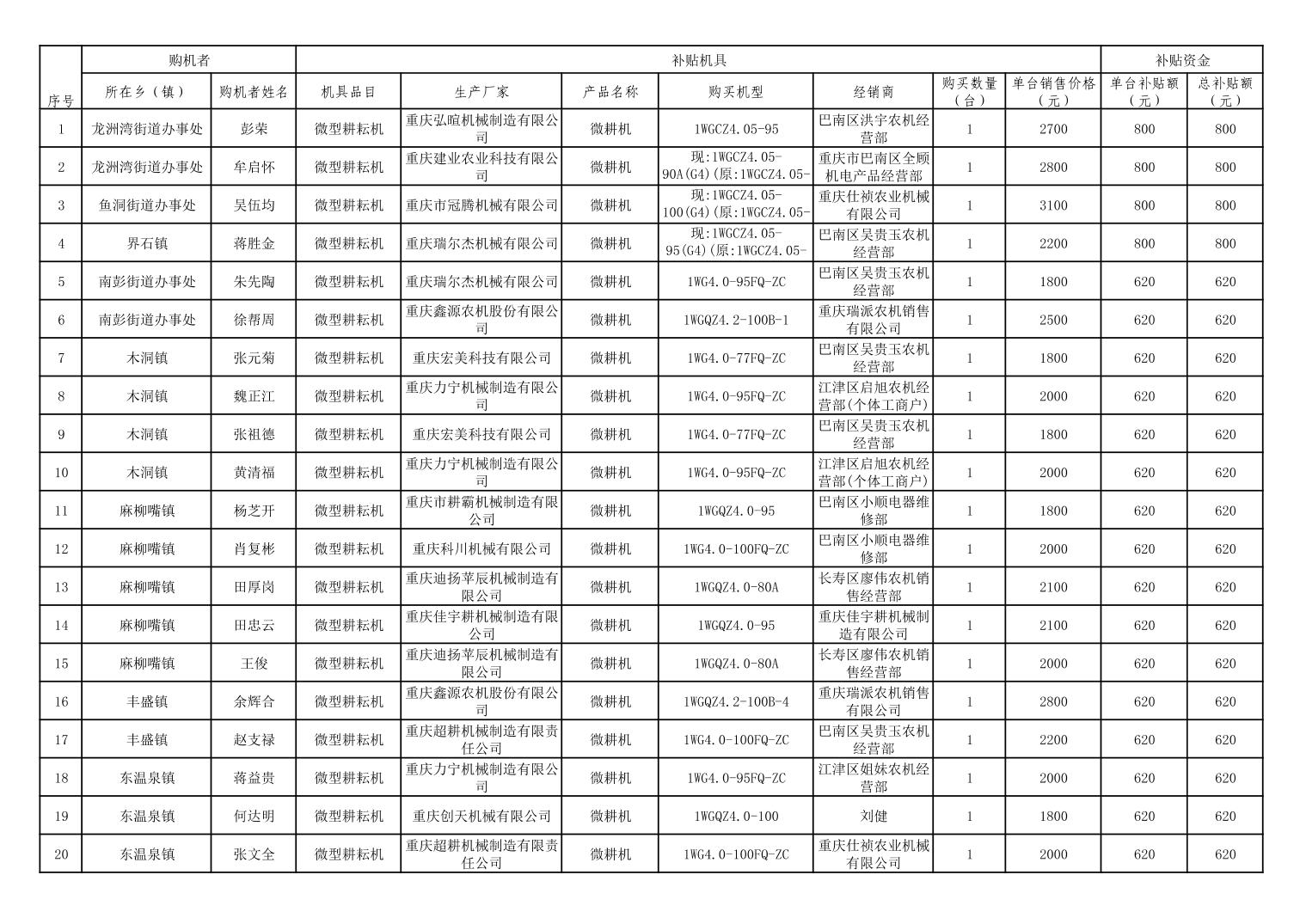 2025年13-14批巴南区享受农机购置与应用补贴的购机者信息表