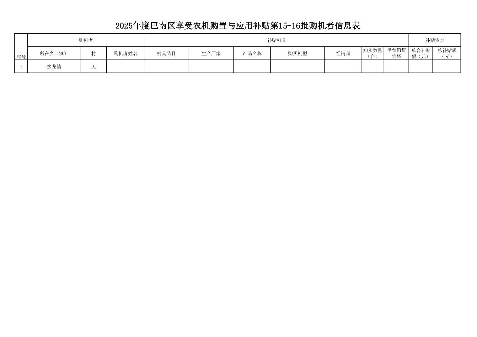 2025年15-16批巴南区享受农机购置与应用补贴的购机者信息表