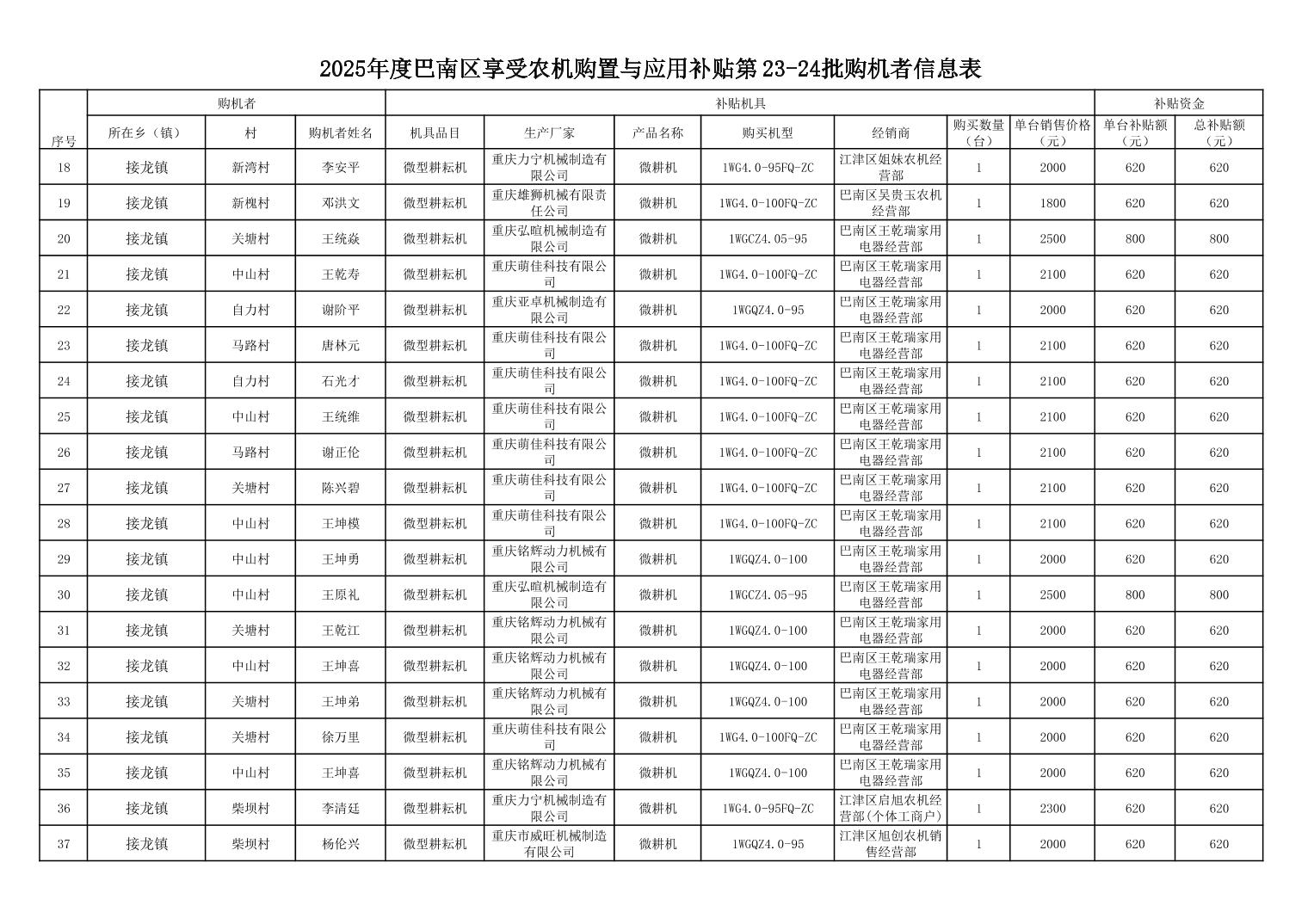 23-24批巴南区享受农机购置与应用补贴的购机者信息表