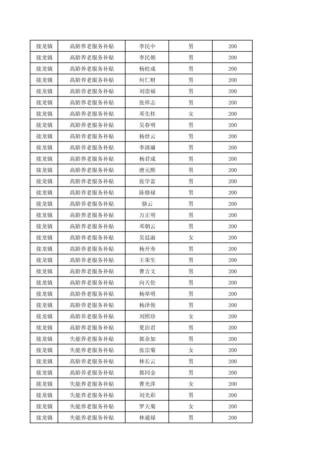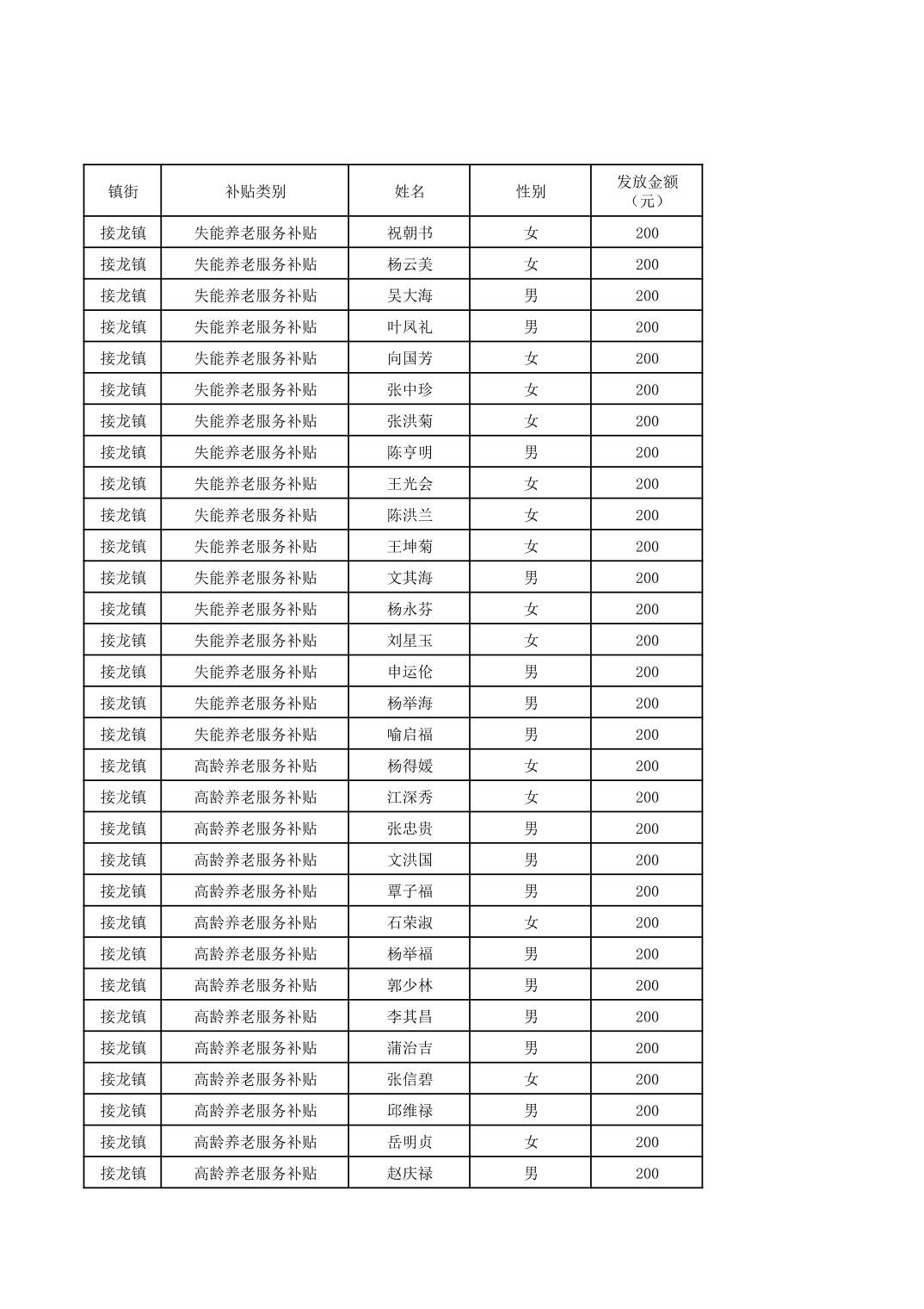 2025年12月接龙镇高龄、失能老年人名册