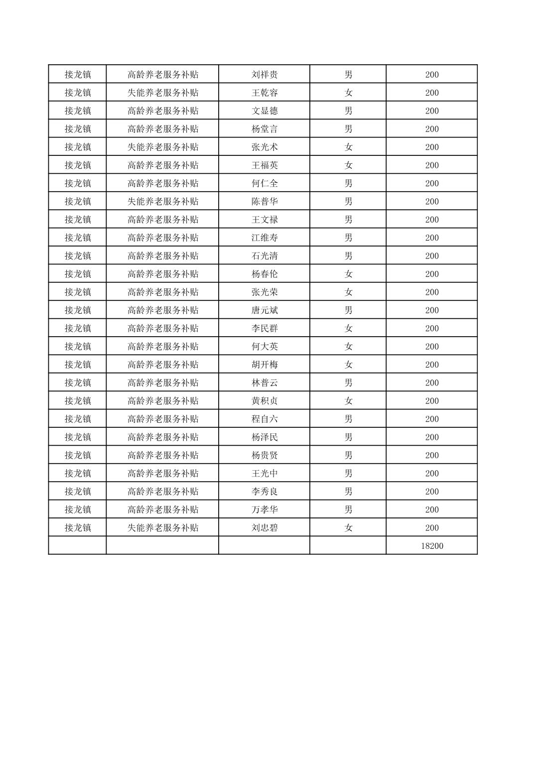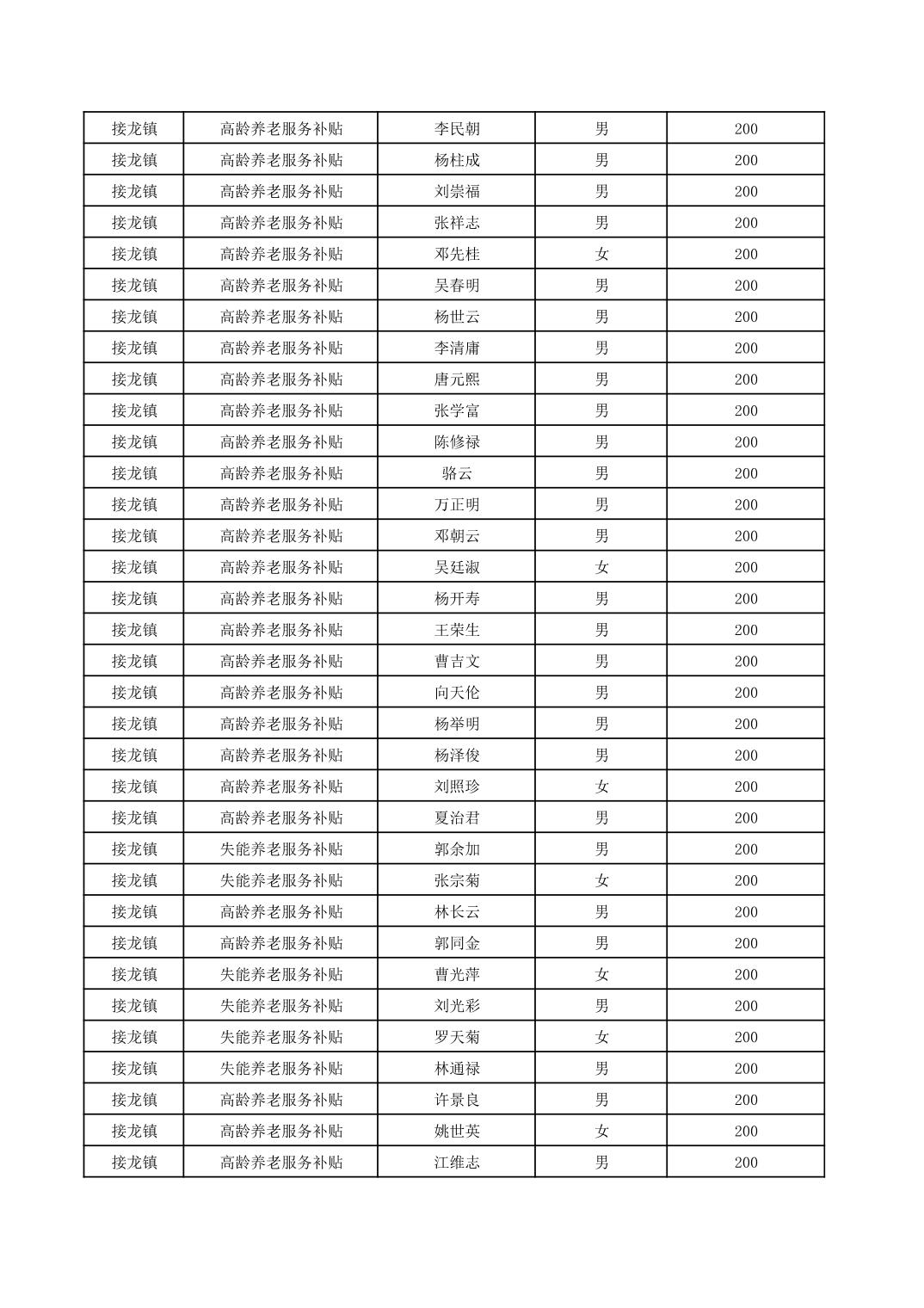 2026年1月接龙镇高龄、失能老年人名册
