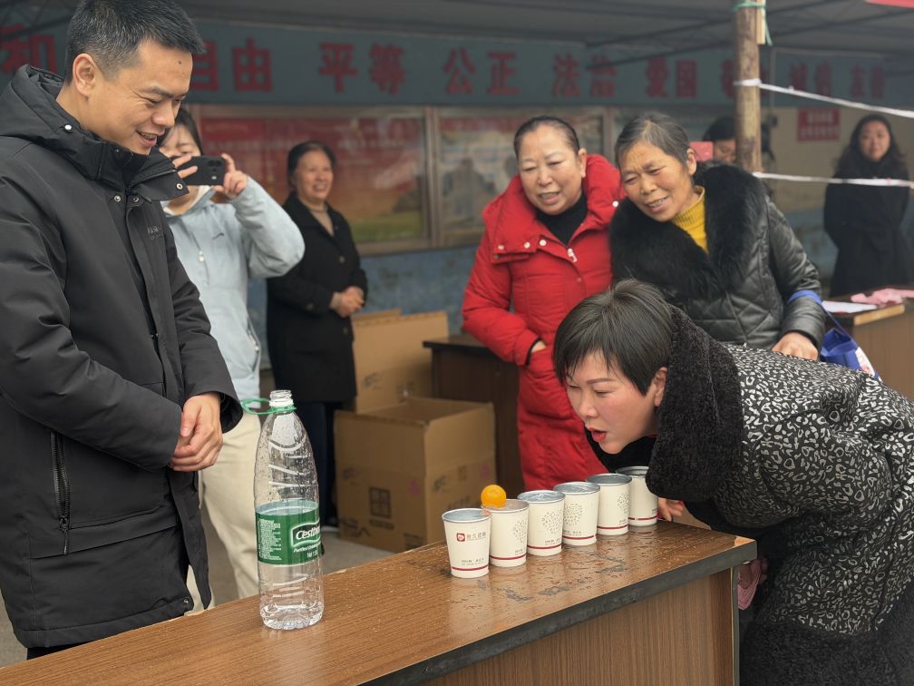 2月10日,海棠村开展“跃马迎春 福满海棠”新春游园活动,营造欢乐祥和的节日氛围。活动设置猜灯谜、吹乒乓、蒙眼踏步、徒手穿裤子等趣味项目。村民踊跃参与,在互动中增进邻里情谊。现场热闹非凡、年味十足。