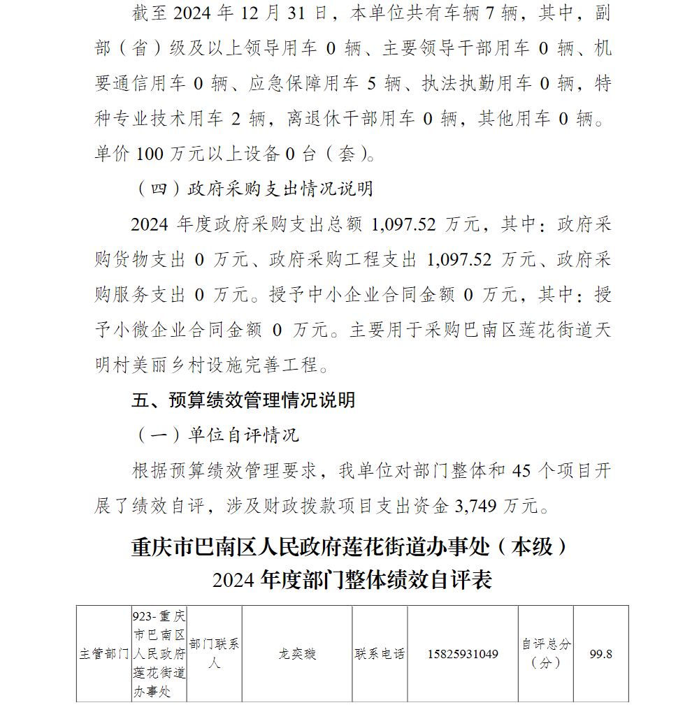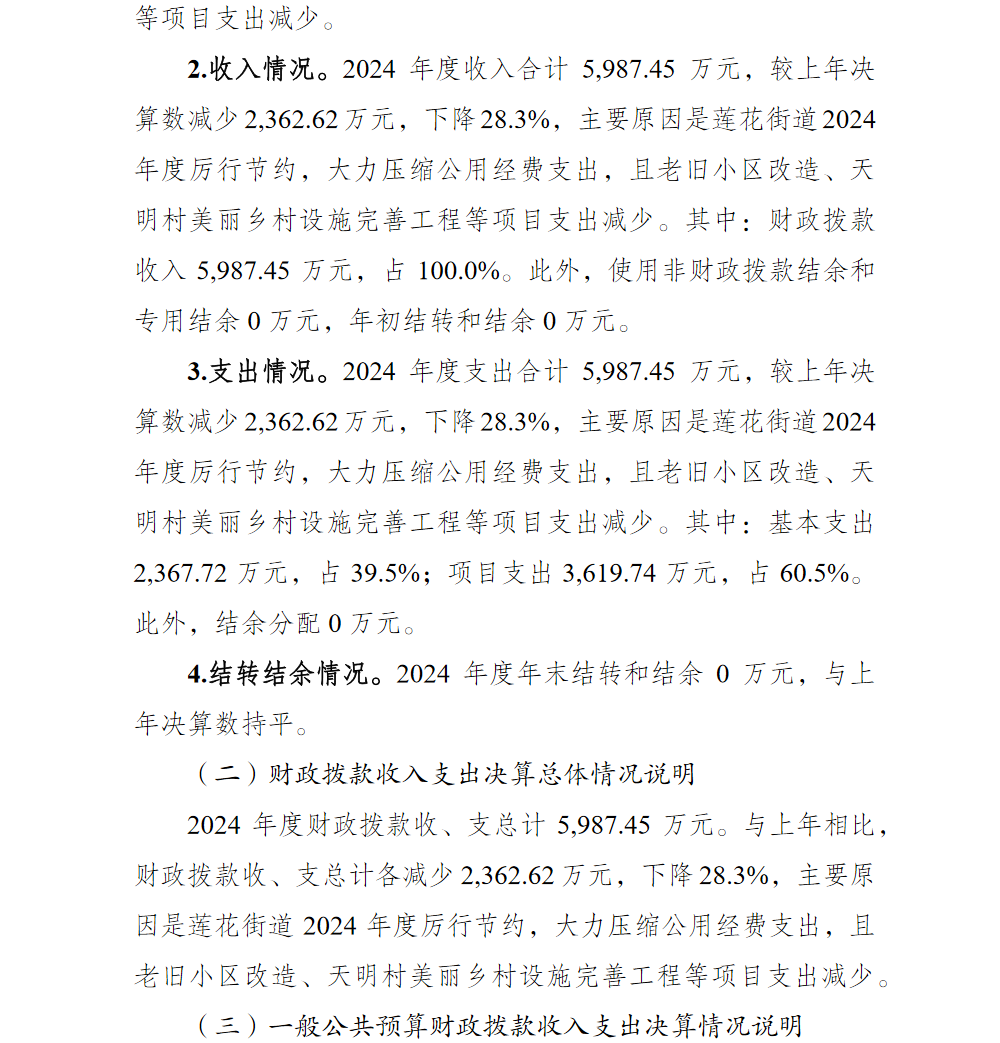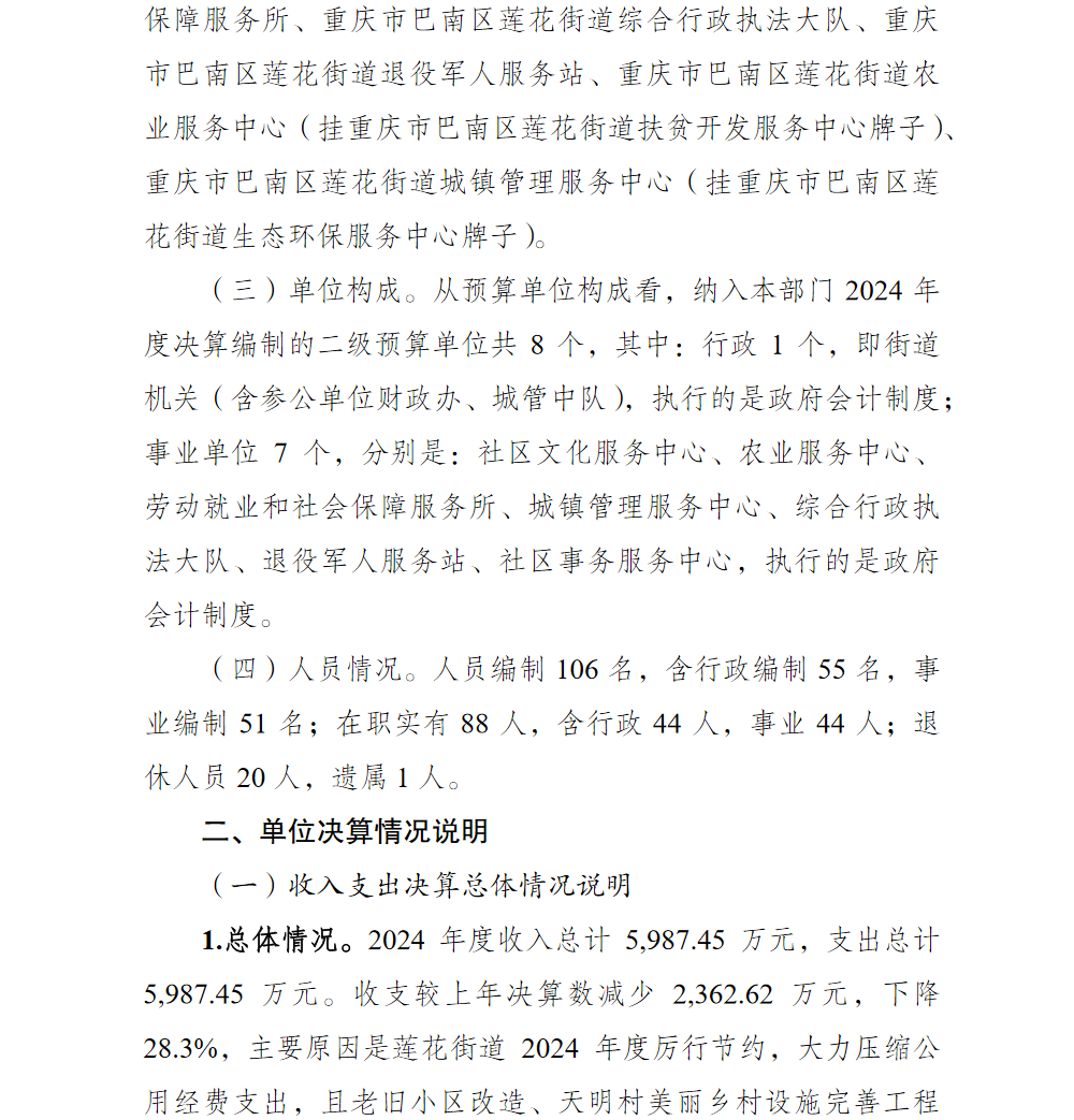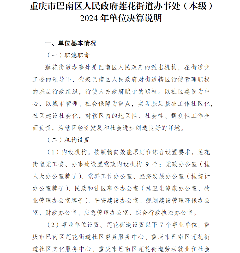 重庆市巴南区人民政府莲花街道办事处(本级)2024年单位决算说明及附表