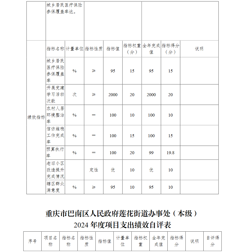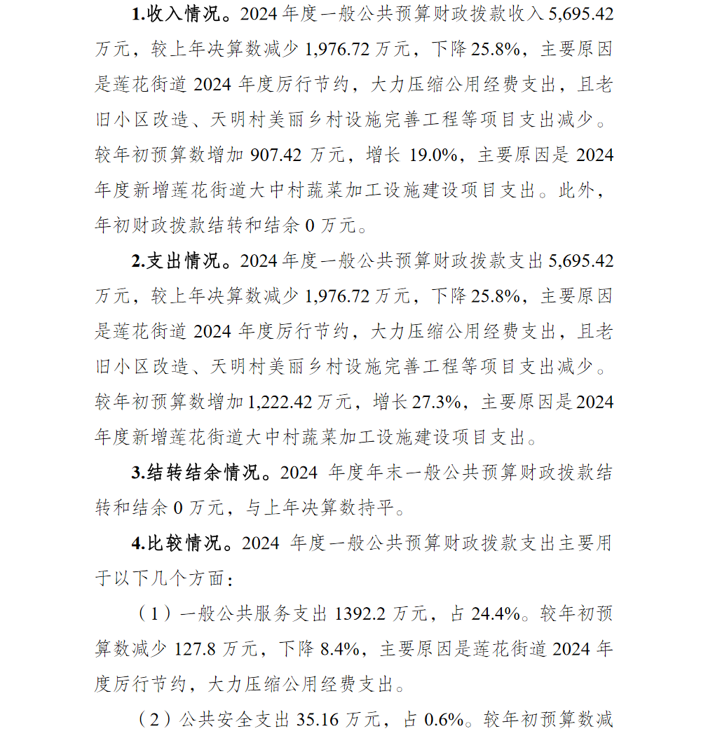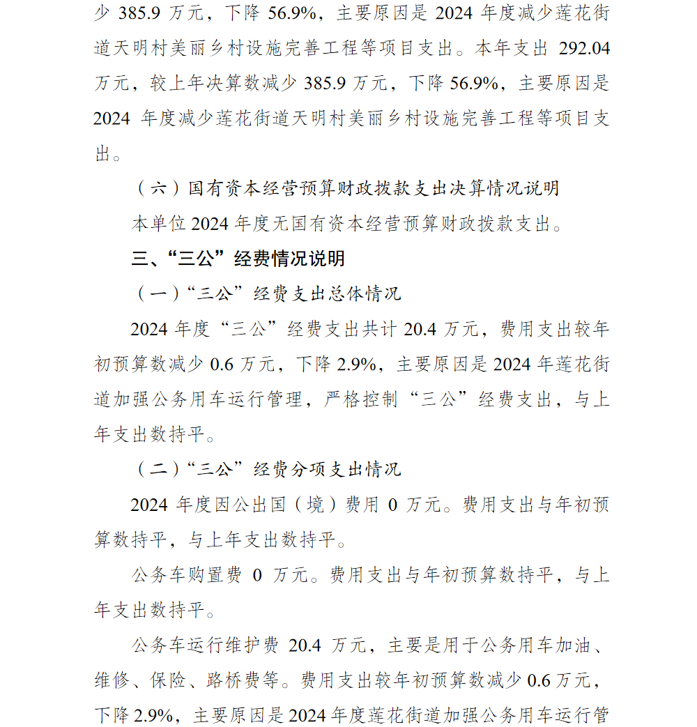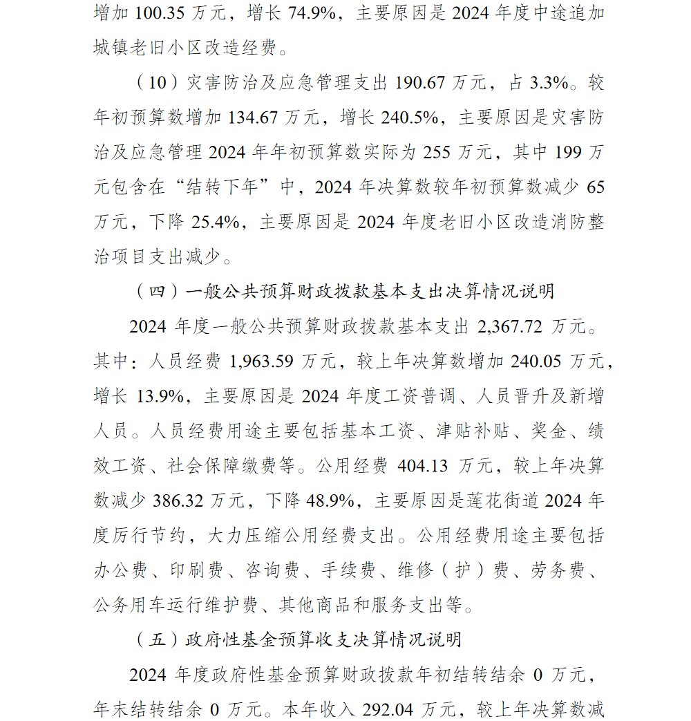 重庆市巴南区人民政府莲花街道办事处(本级)2024年单位决算说明及附表