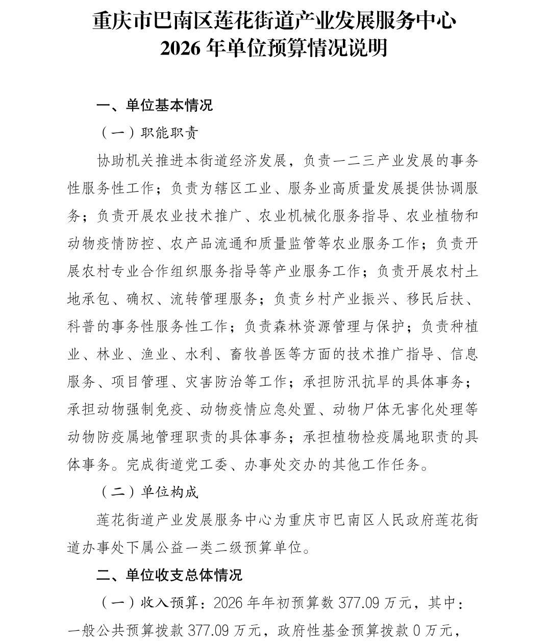 重庆市巴南区莲花街道产业发展服务中心2026年单位预算情况说明及附表
