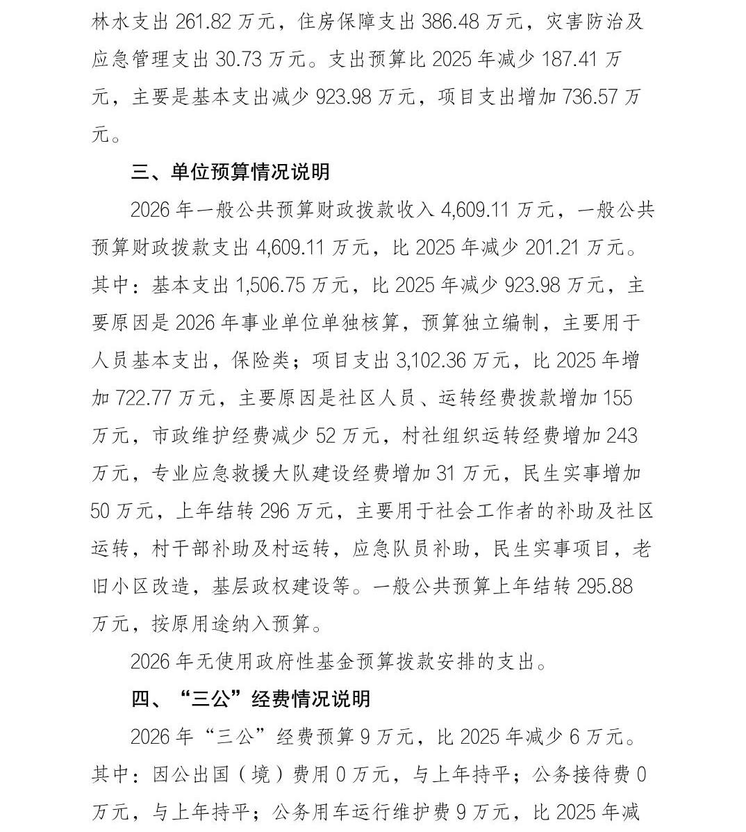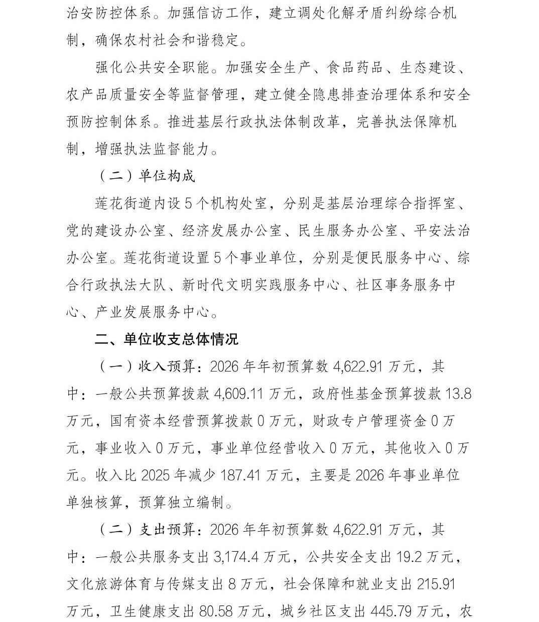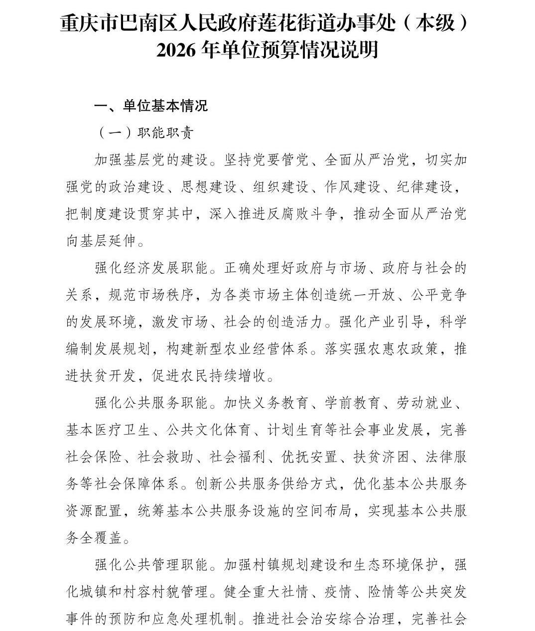重庆市巴南区人民政府莲花街道办事处(本级)2026年单位预算情况说明及附表