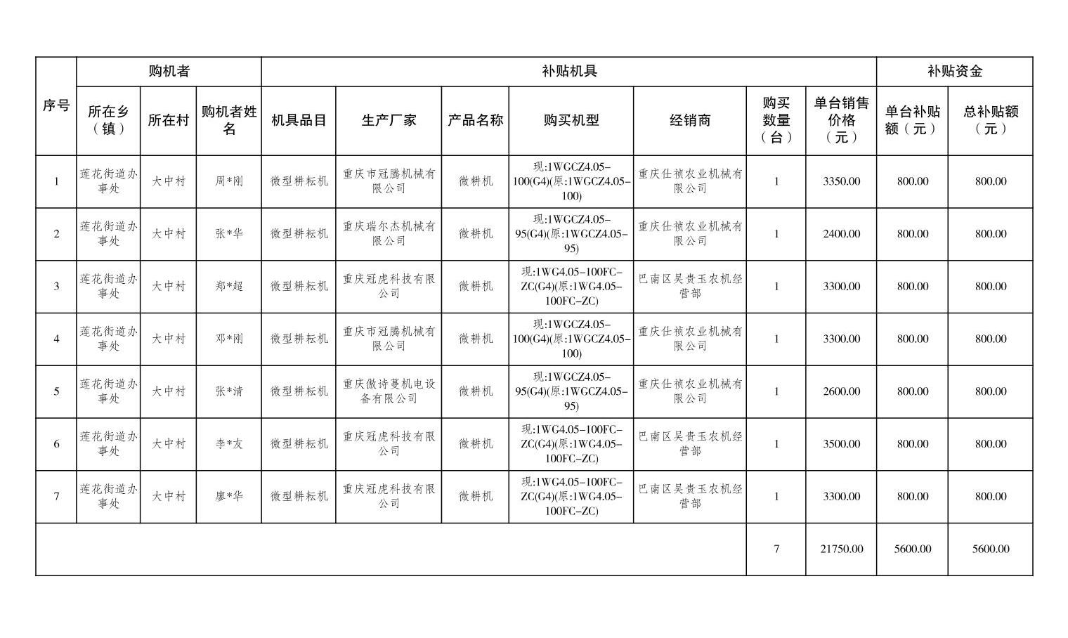 2025年度莲花街道第13-14批享受农机购置与应用补贴的购机者信息公示表