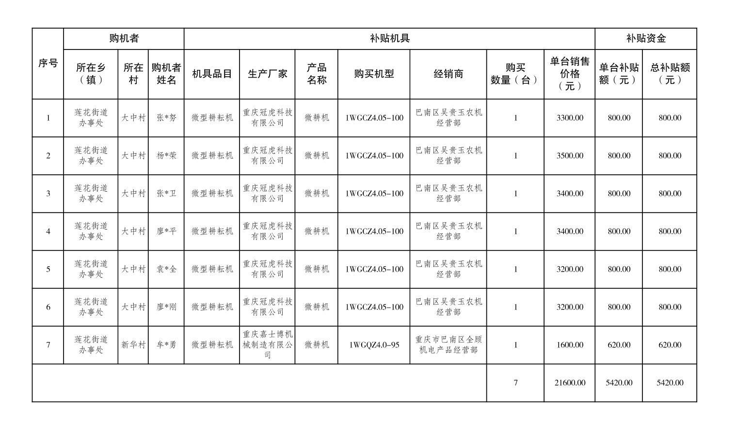 2025年度莲花街道第15-16批享受农机购置与应用补贴的购机者信息公示表