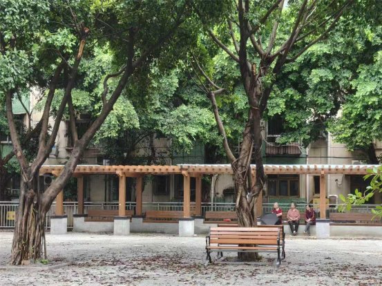 改造坚持“生态优先、适老为本、共建共享”原则:原有树木被完整保留,融入新景观;新建休闲长廊,方便居民遮阳避雨;增设乒乓球台、适老化健身器材与多处靠背座椅,充分满足老年人锻炼、交流与休憩的需要。
