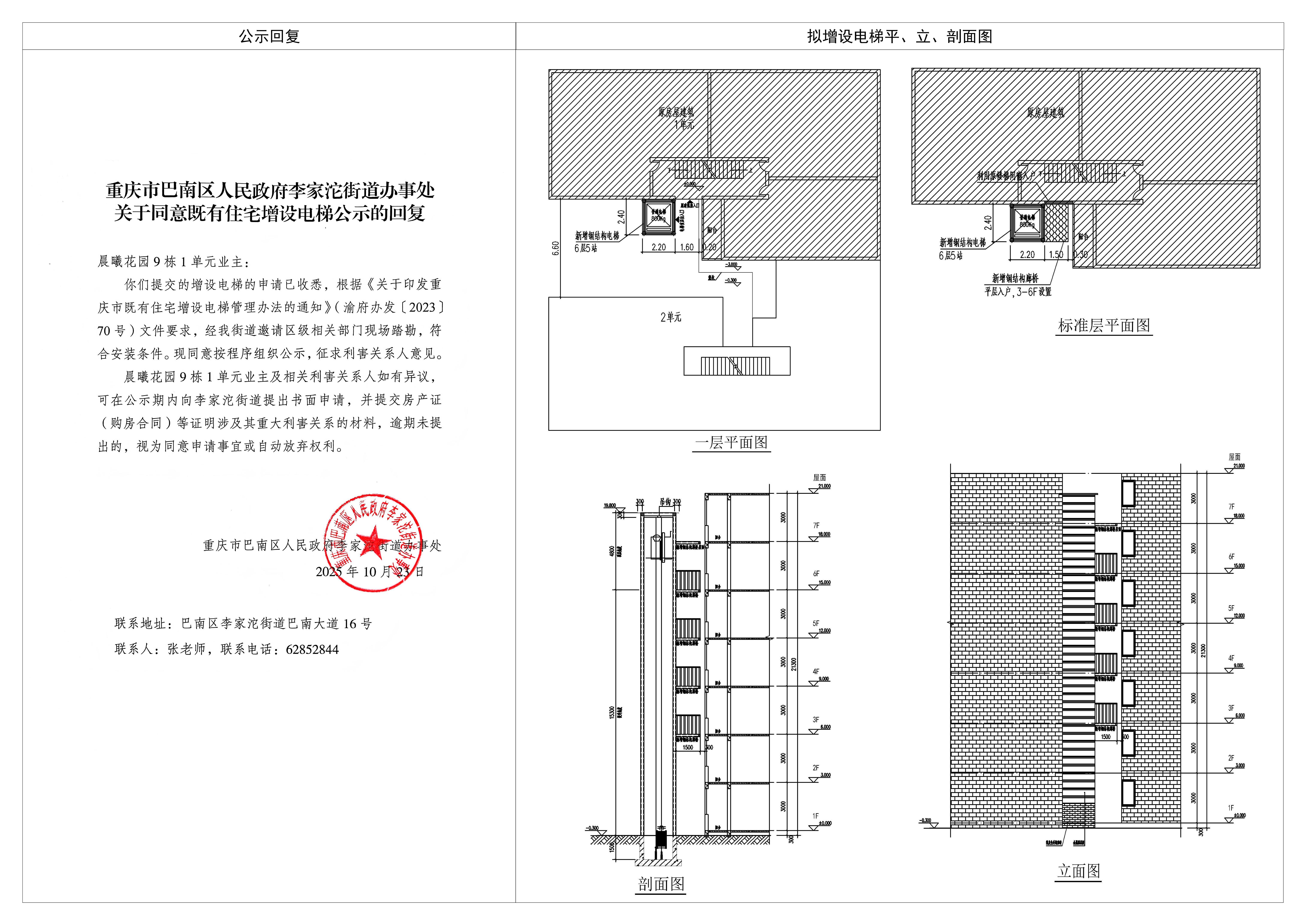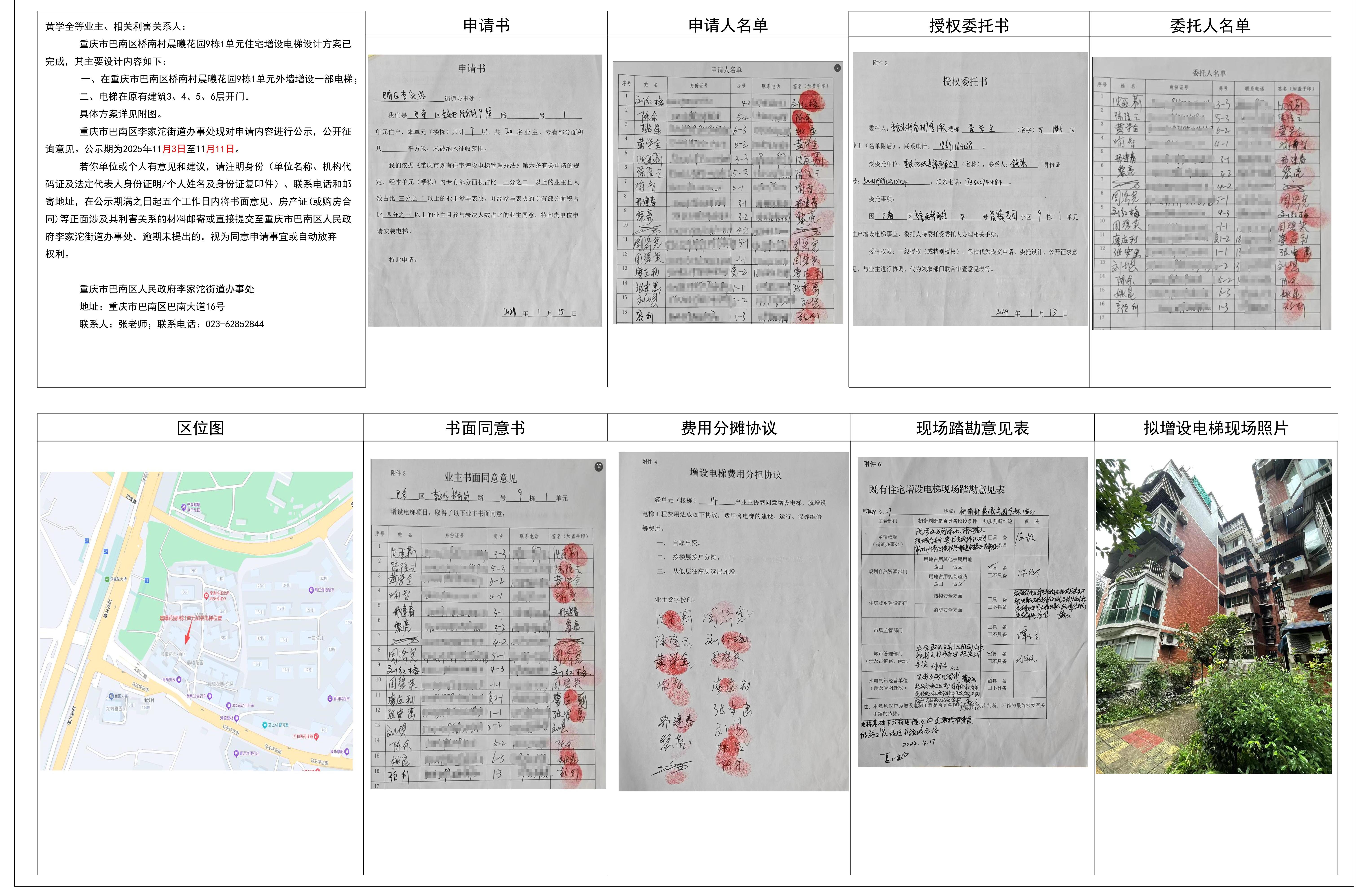 重庆市巴南区桥南村晨曦花园9栋1单元增设电梯方案公示