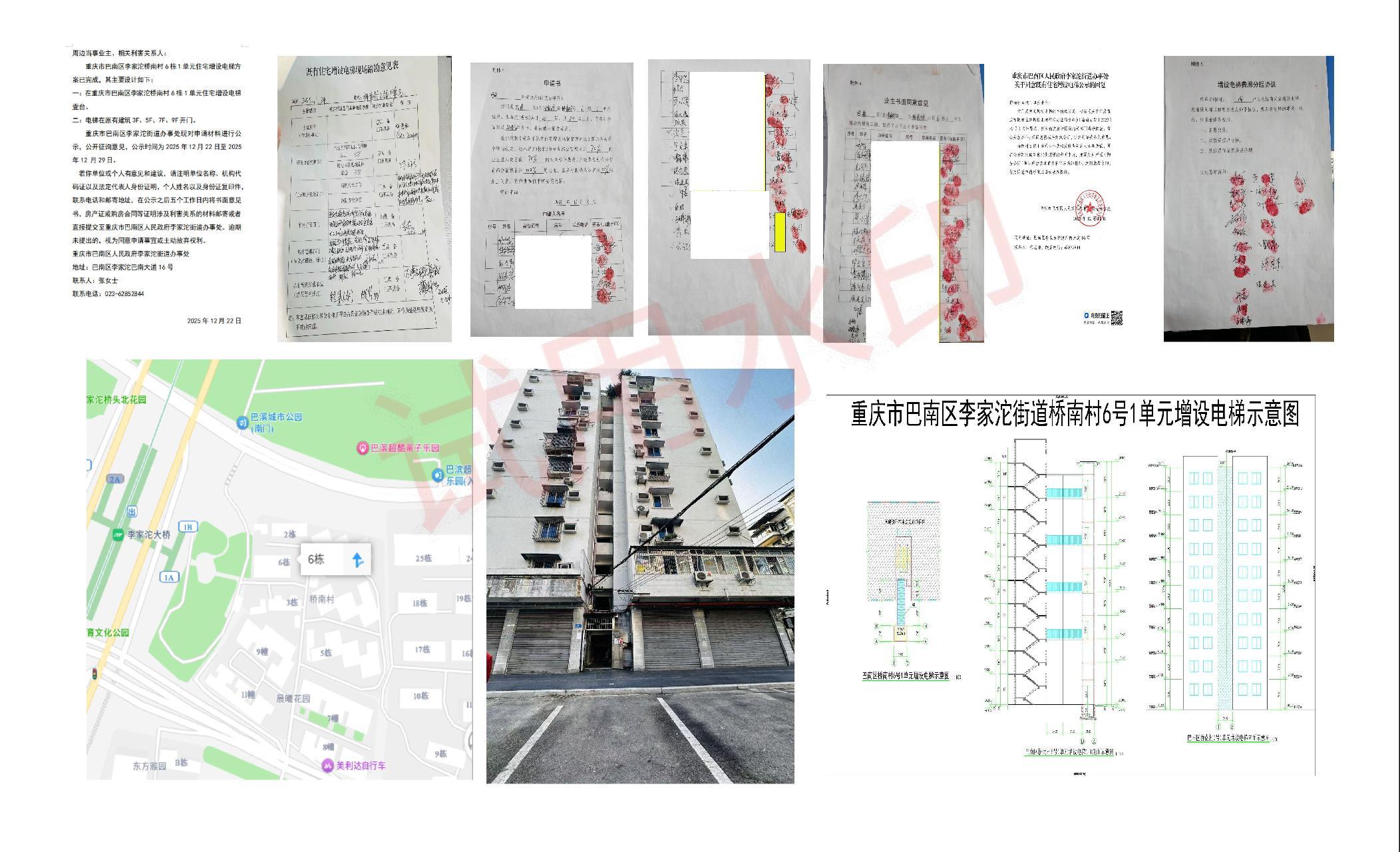 重庆巴南区李家沱桥南村6栋1单元增设电梯公示图