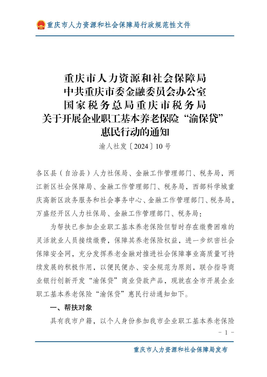 关于开展企业职工基本养老保险“渝保贷”__惠民行动的通知(特别说明:最新的贷款条件是缴费13年以上,缴满年限和距离法定退休年龄2年内)