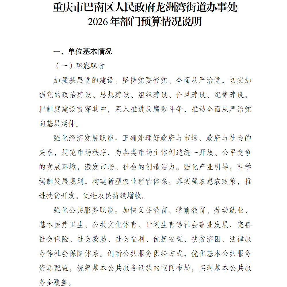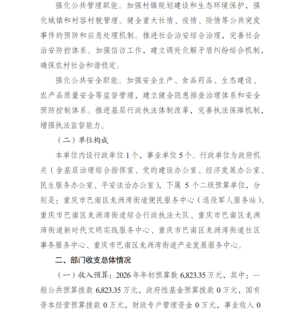 重庆市巴南区人民政府龙洲湾街道办事处2026年部门预算情况说明及附表