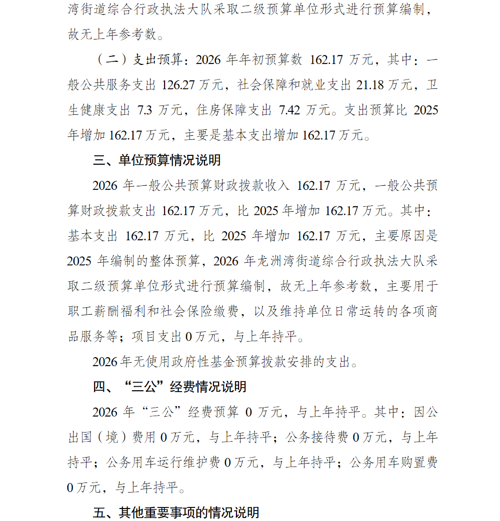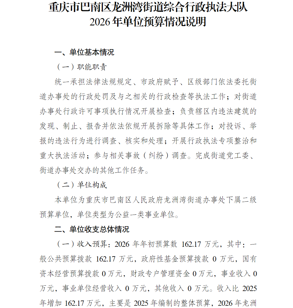 重庆市巴南区龙洲湾街道综合行政执法大队2026年单位预算情况说明及附表