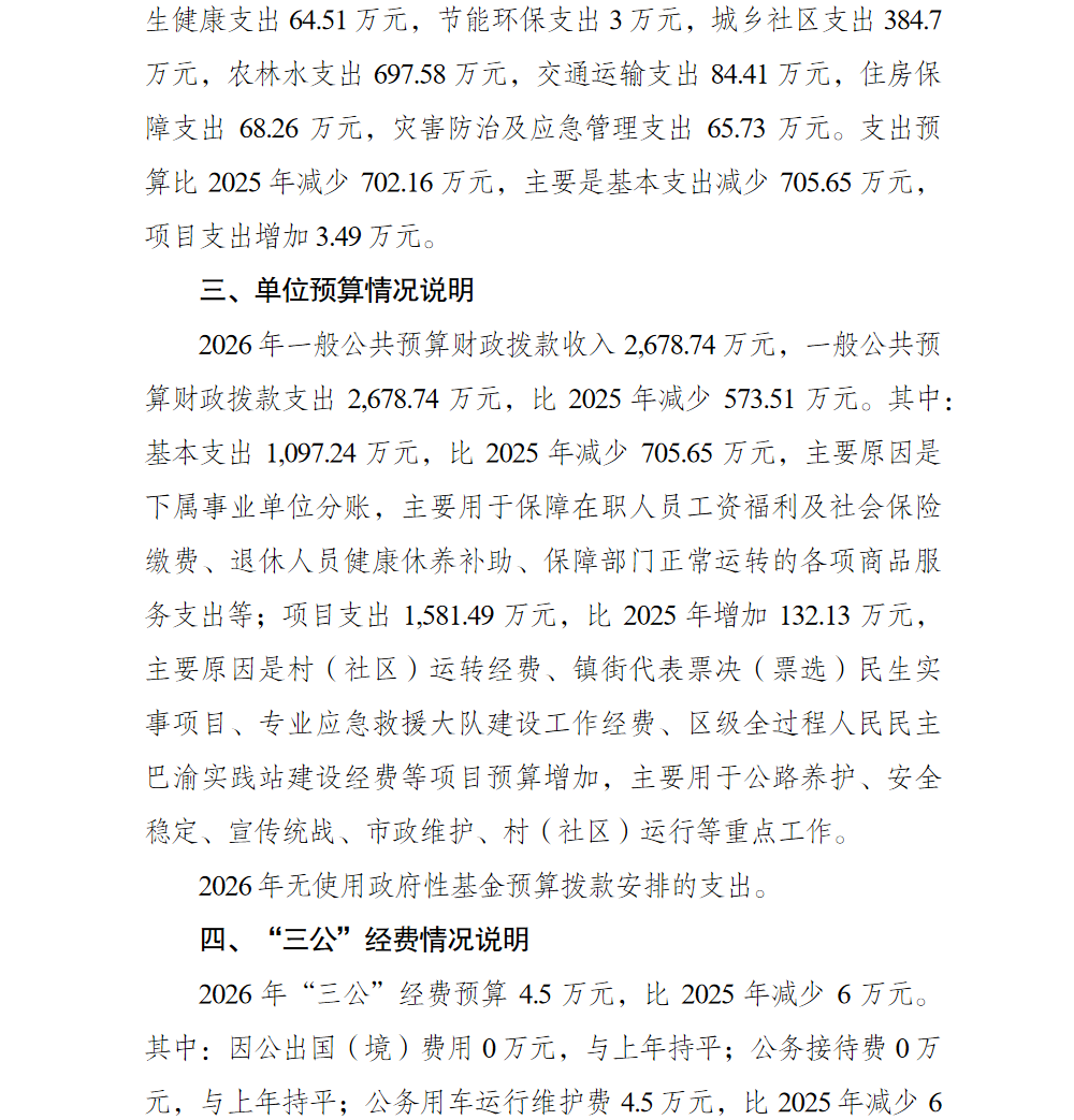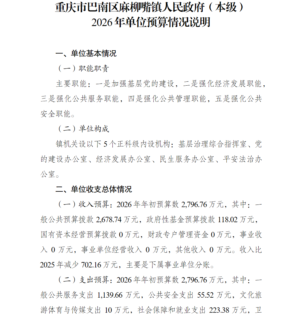 重庆市巴南区麻柳嘴镇人民政府(本级)2026年单位预算情况说明及附表