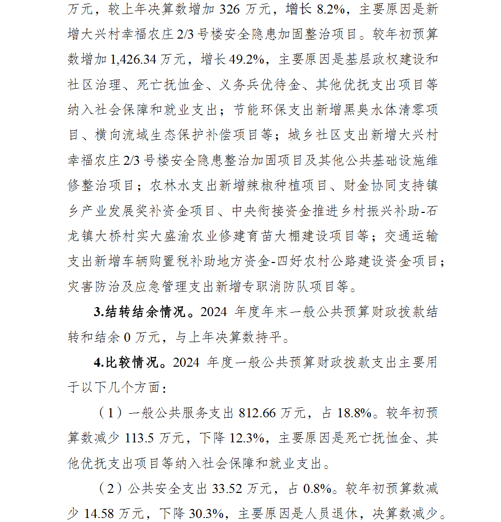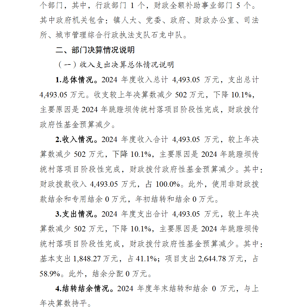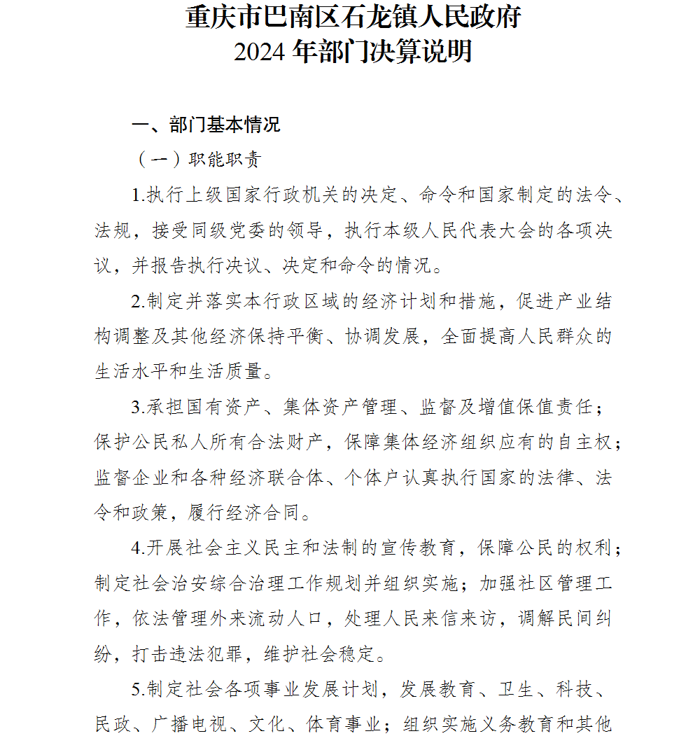 重庆市巴南区石龙镇人民政府2024年部门决算情况说明