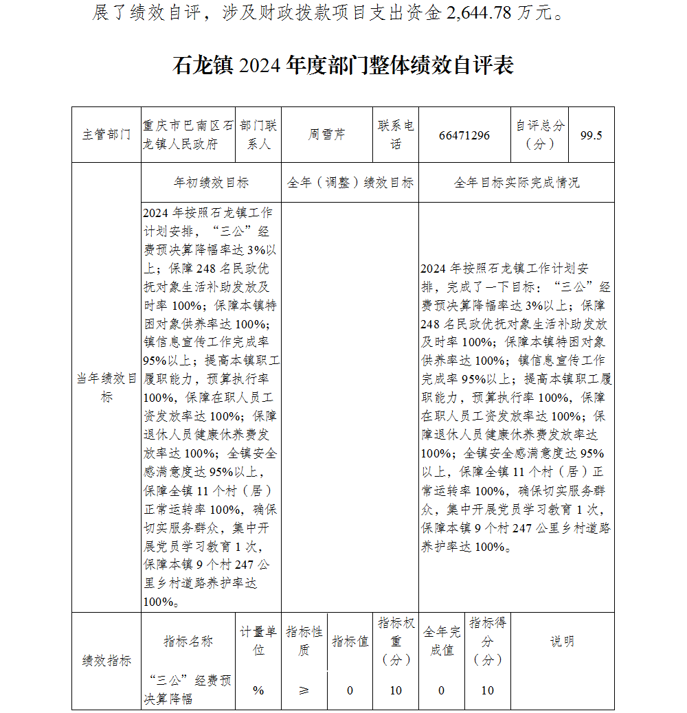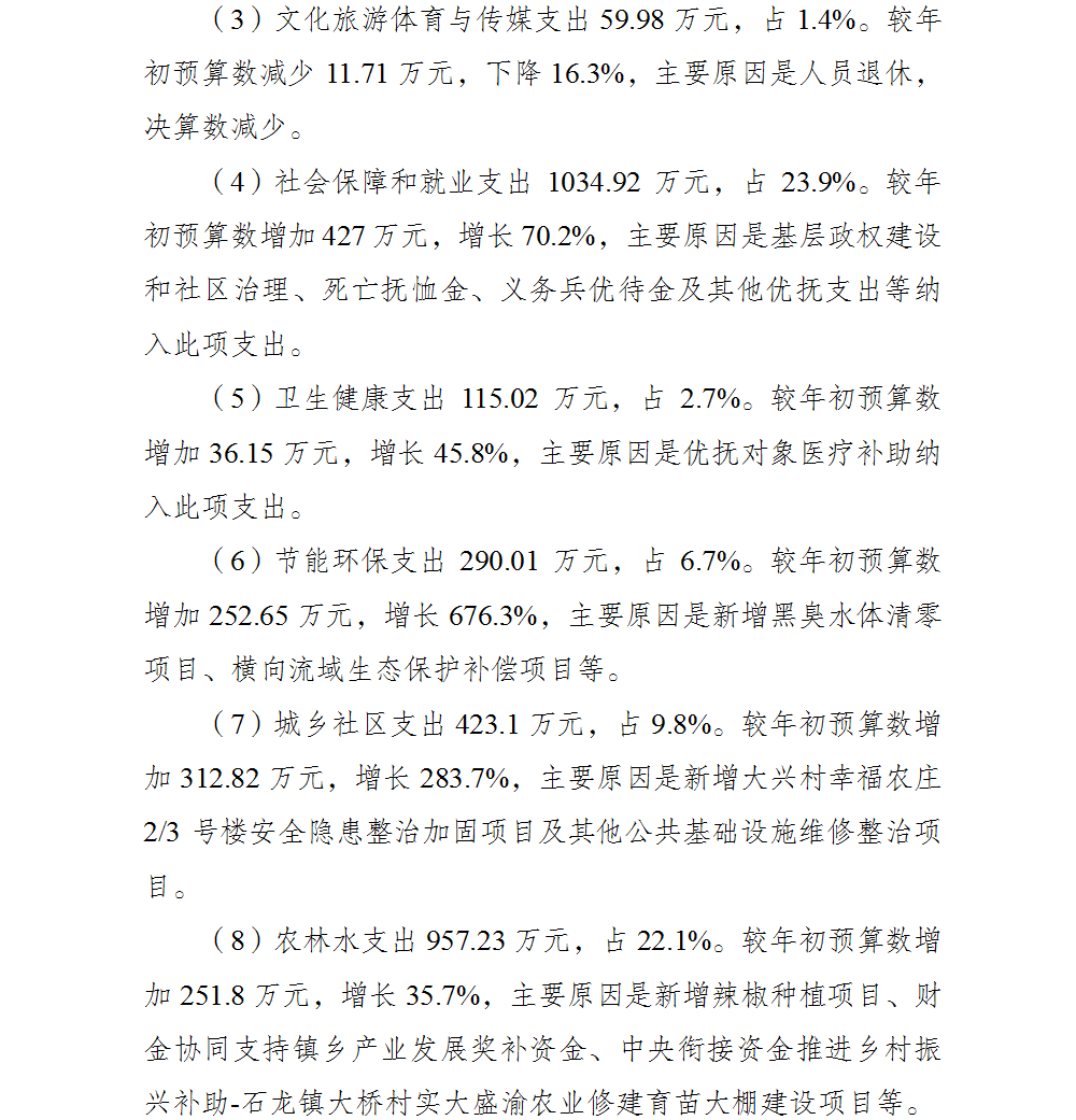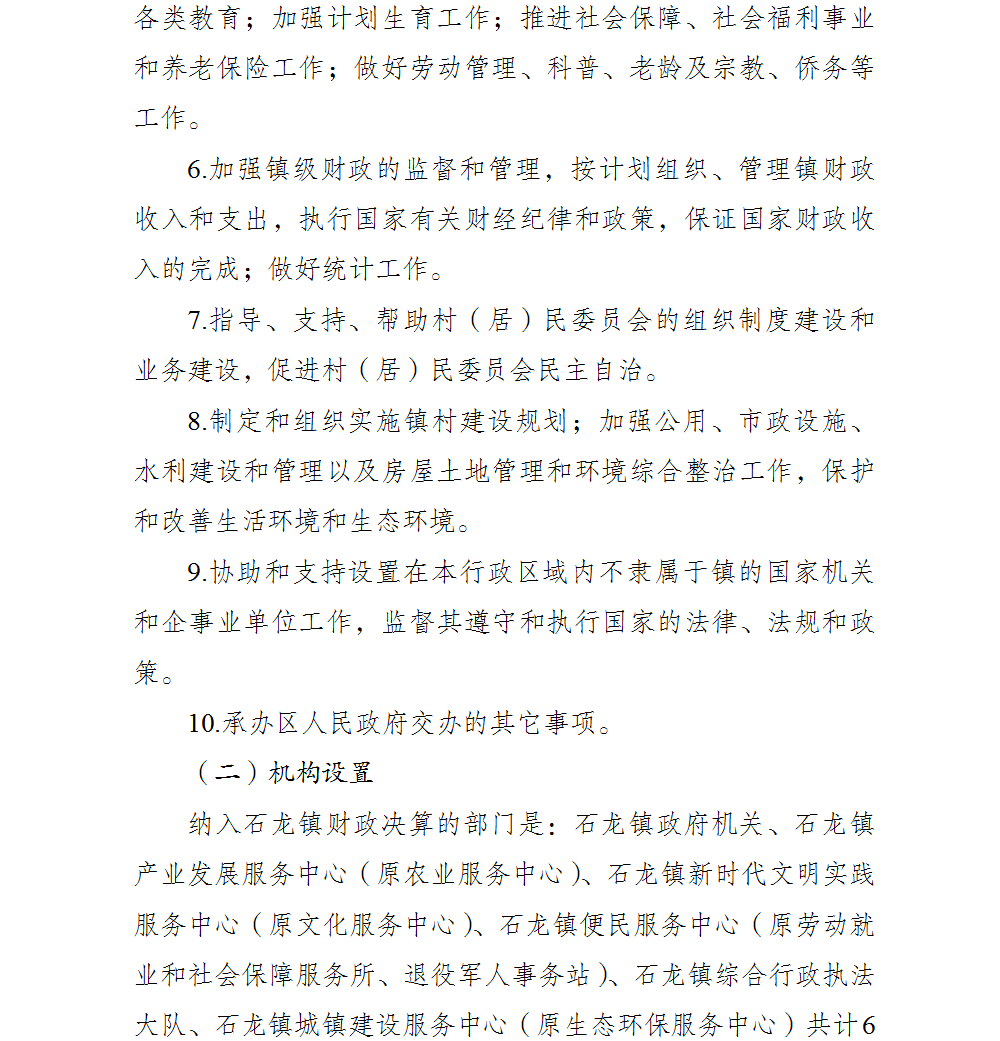 重庆市巴南区石龙镇人民政府2024年部门决算情况说明