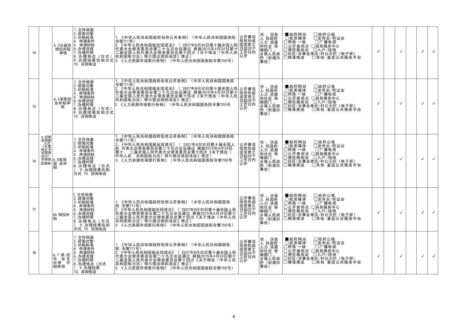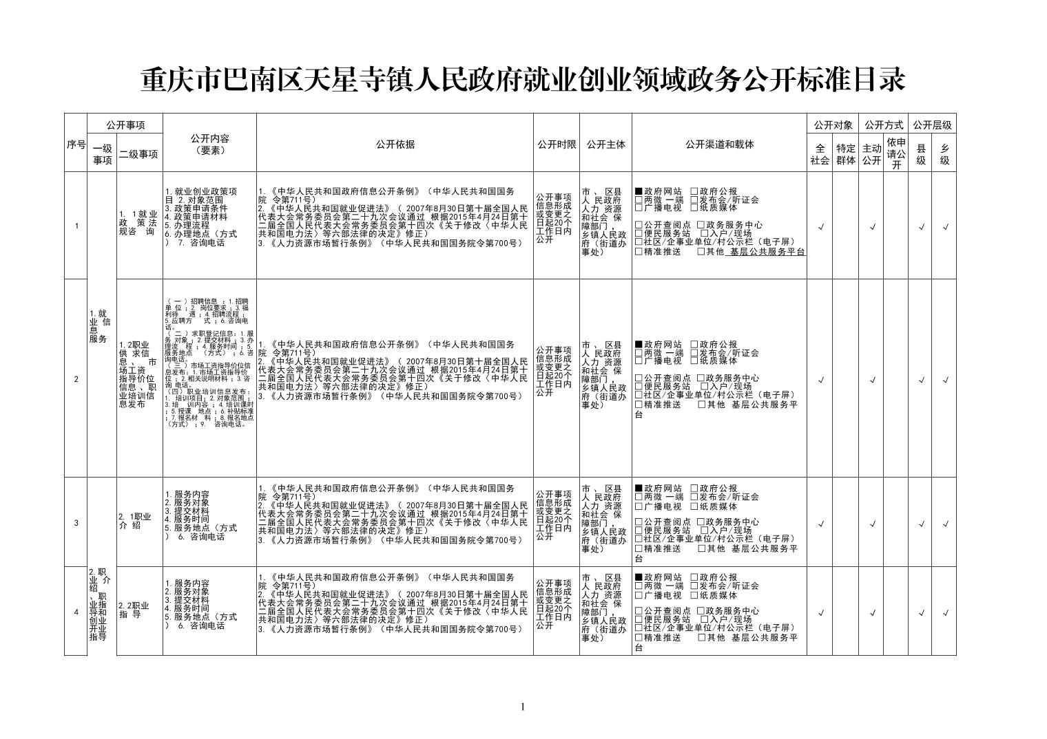 首页>天星寺镇>政务公开>政府信息公开目录>基层政务公开>就业创业领域>标准目录