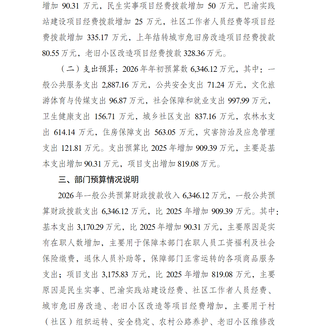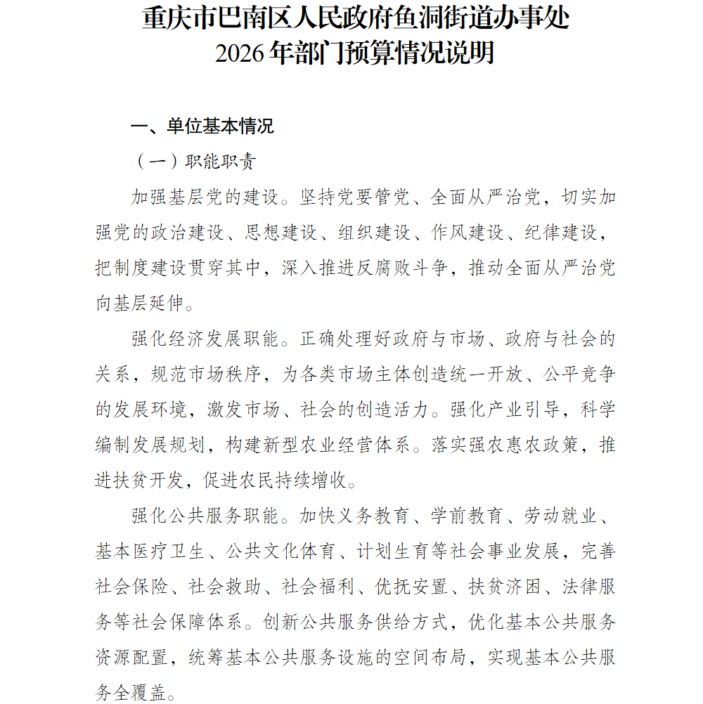 重庆市巴南区人民政府鱼洞街道办事处2026年部门预算情况说明