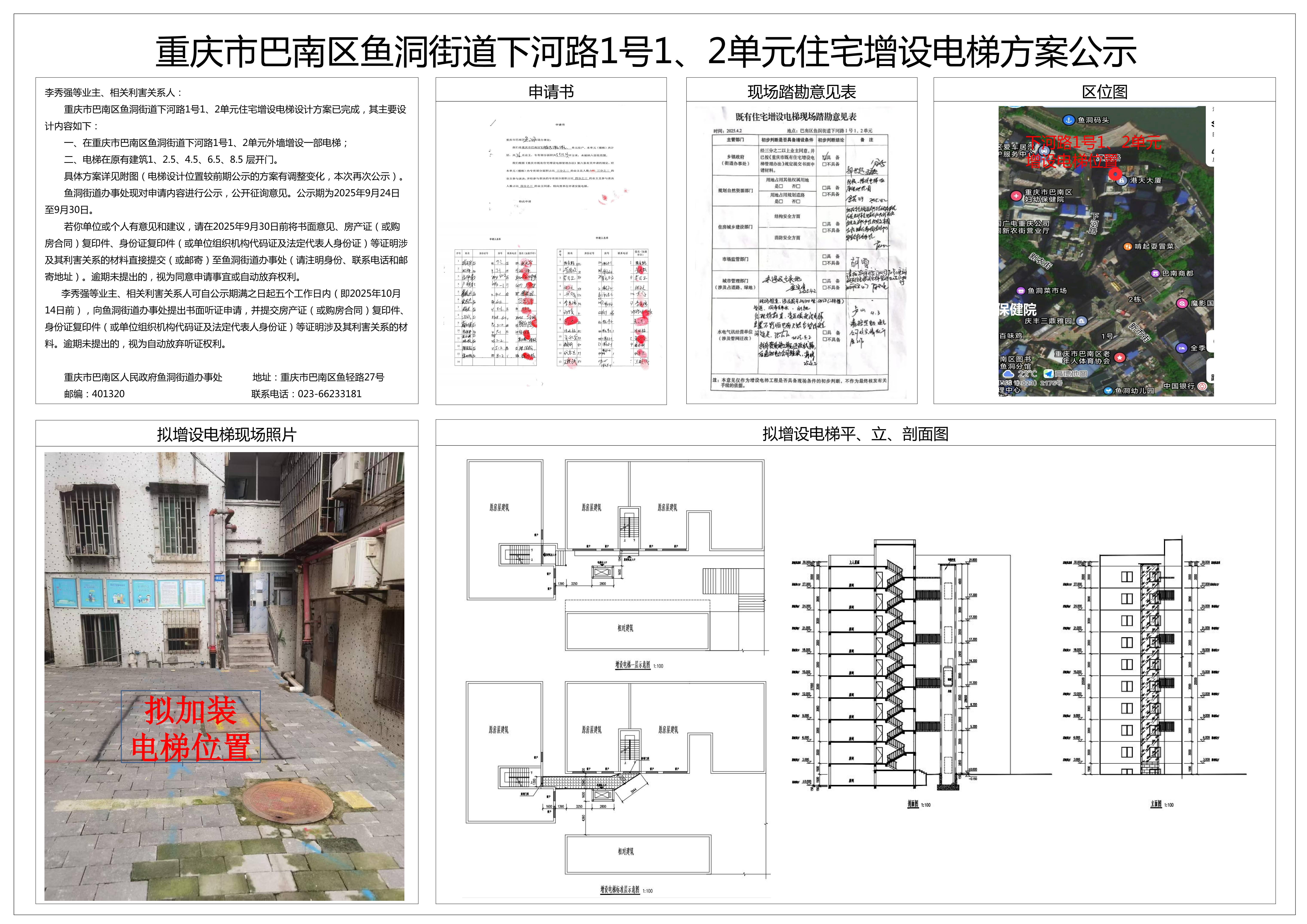 重庆市巴南区鱼洞街道下河路1号1、2单元住宅增设电梯方案公示