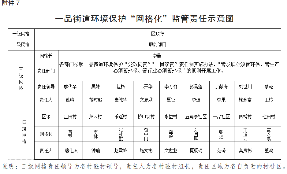 2.责任分解。根据《巴南区环境监管网格化工作实施方案》制定《一品街道环境网格化工作责任分解表》(见附件8)。