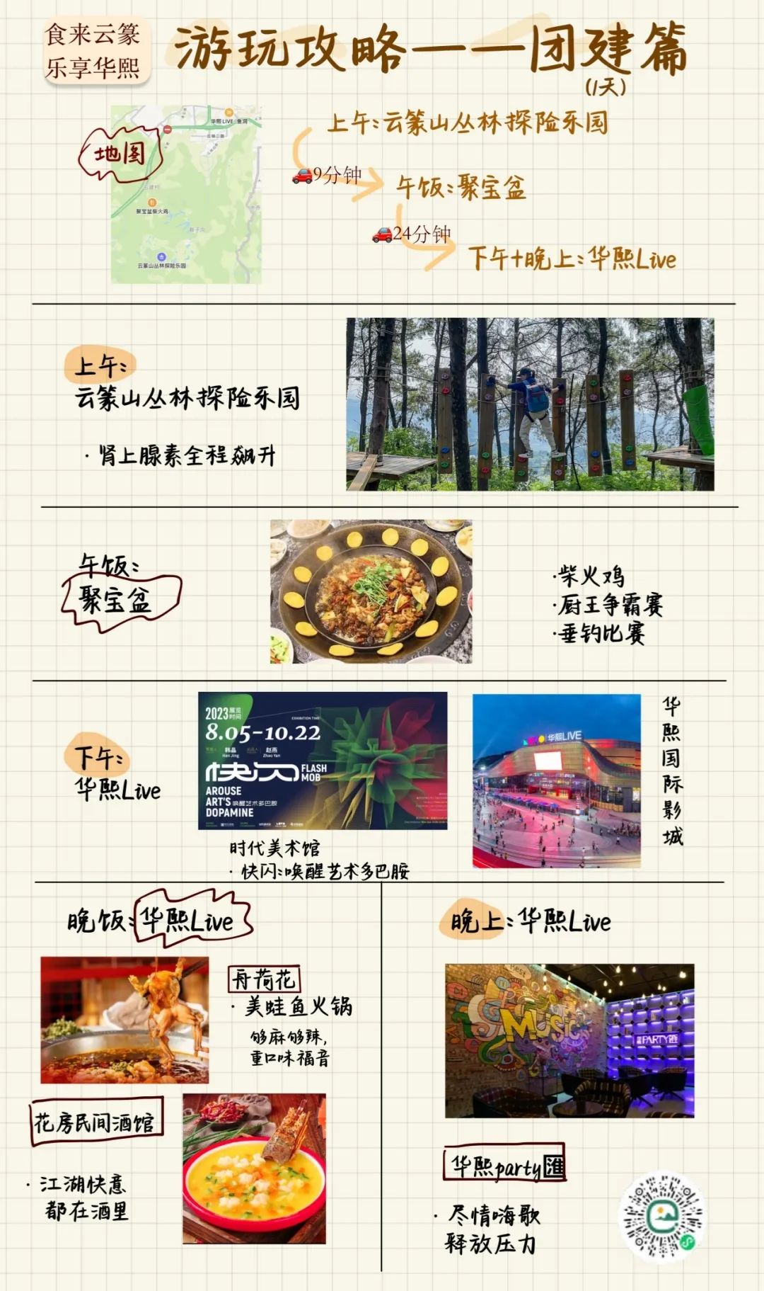 现特别推出“食来云篆·乐享华熙”游玩攻略,有团建篇、亲子篇、演唱会粉丝篇、自由出行篇四种版本,为你解决各类场景需求,简直是“懒人”福音!