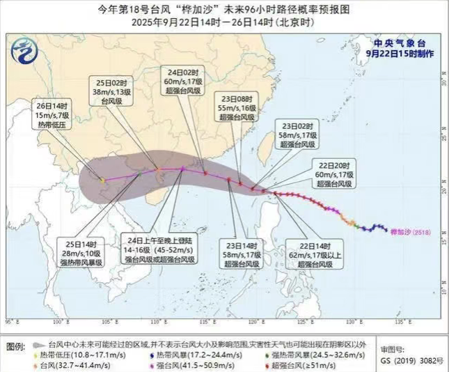 据我国及越南气象部门预报,今年最强台风“桦加沙”将于24日凌晨至下午在广东汕尾至海南文昌一带登陆,巅峰强度将接近2024年第11号台风“摩羯”。9月23日至25日,越南广宁、海防、清化、义安等省份将有特大暴雨,局部地区可能有山洪及泥石流灾害。