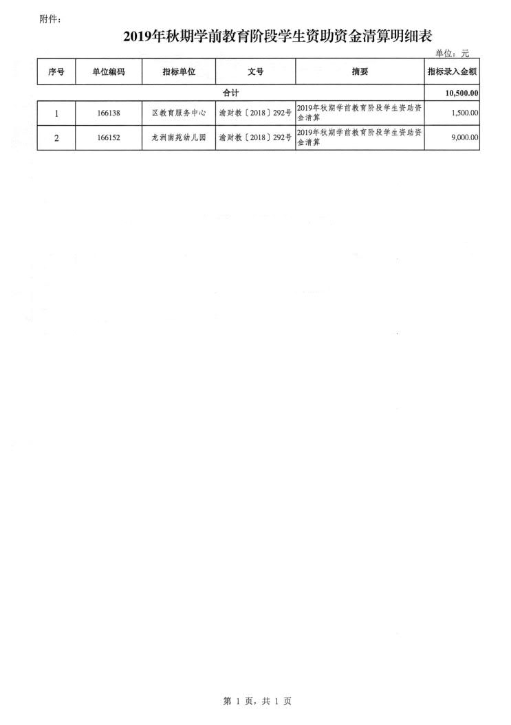 关于下达2019年秋期学前教育阶段学生资助资金清算的通知