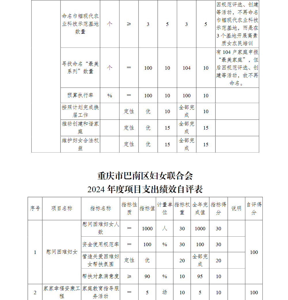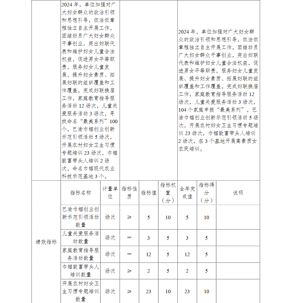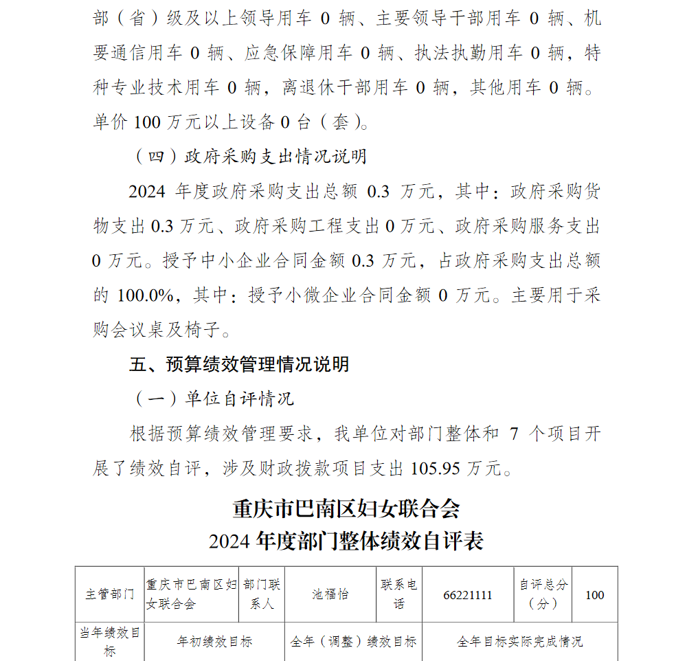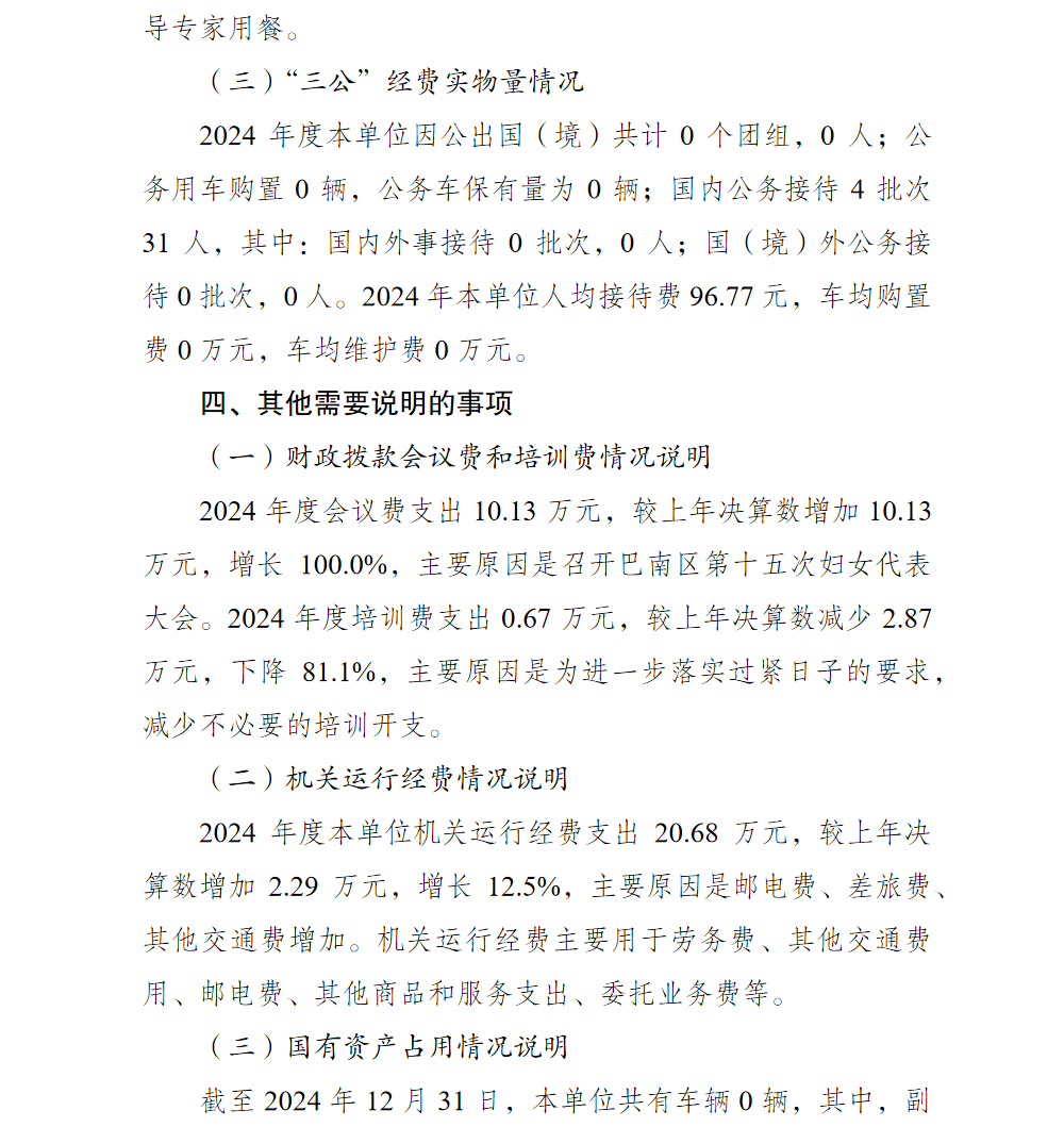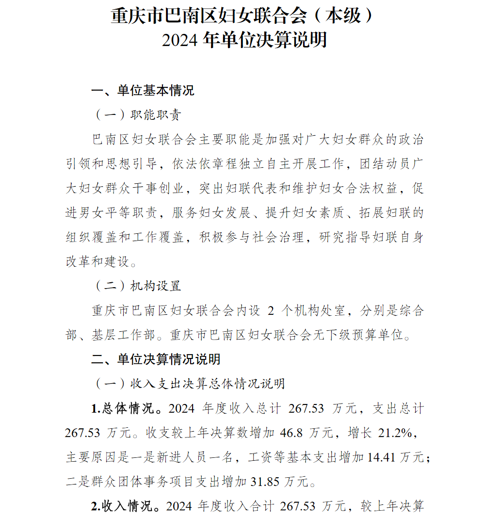 重庆市巴南区妇女联合会(本级)2024年单位决算说明及附表