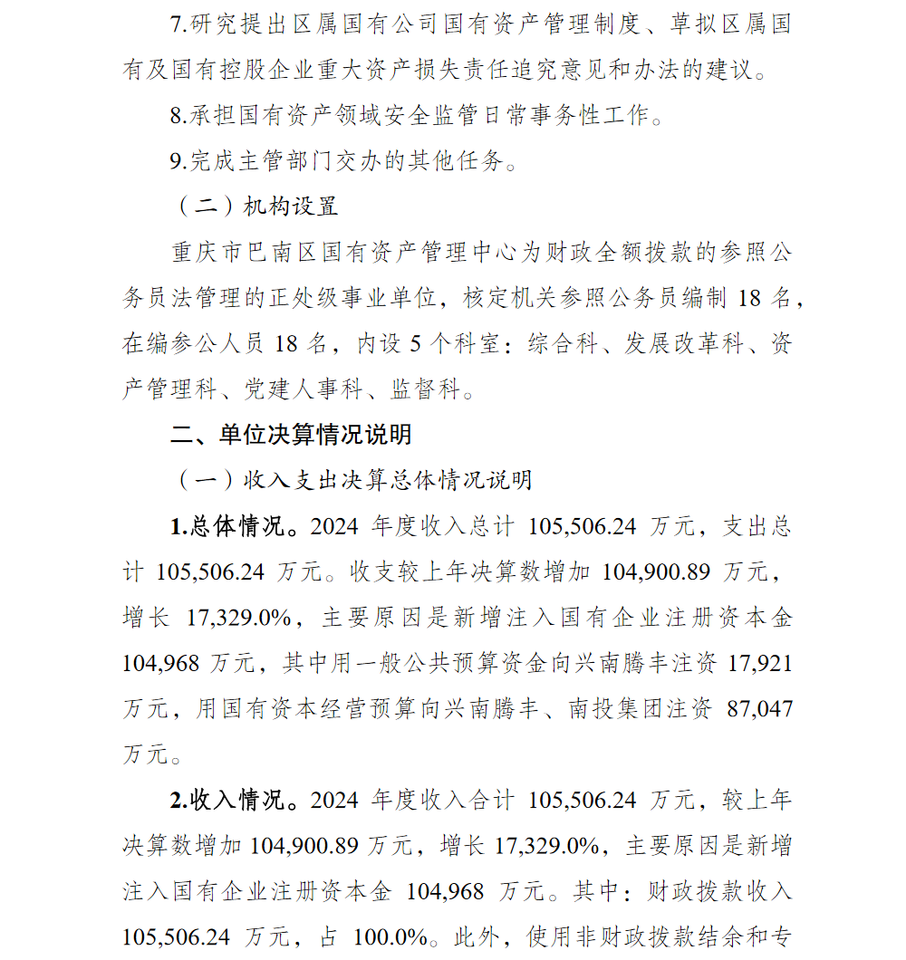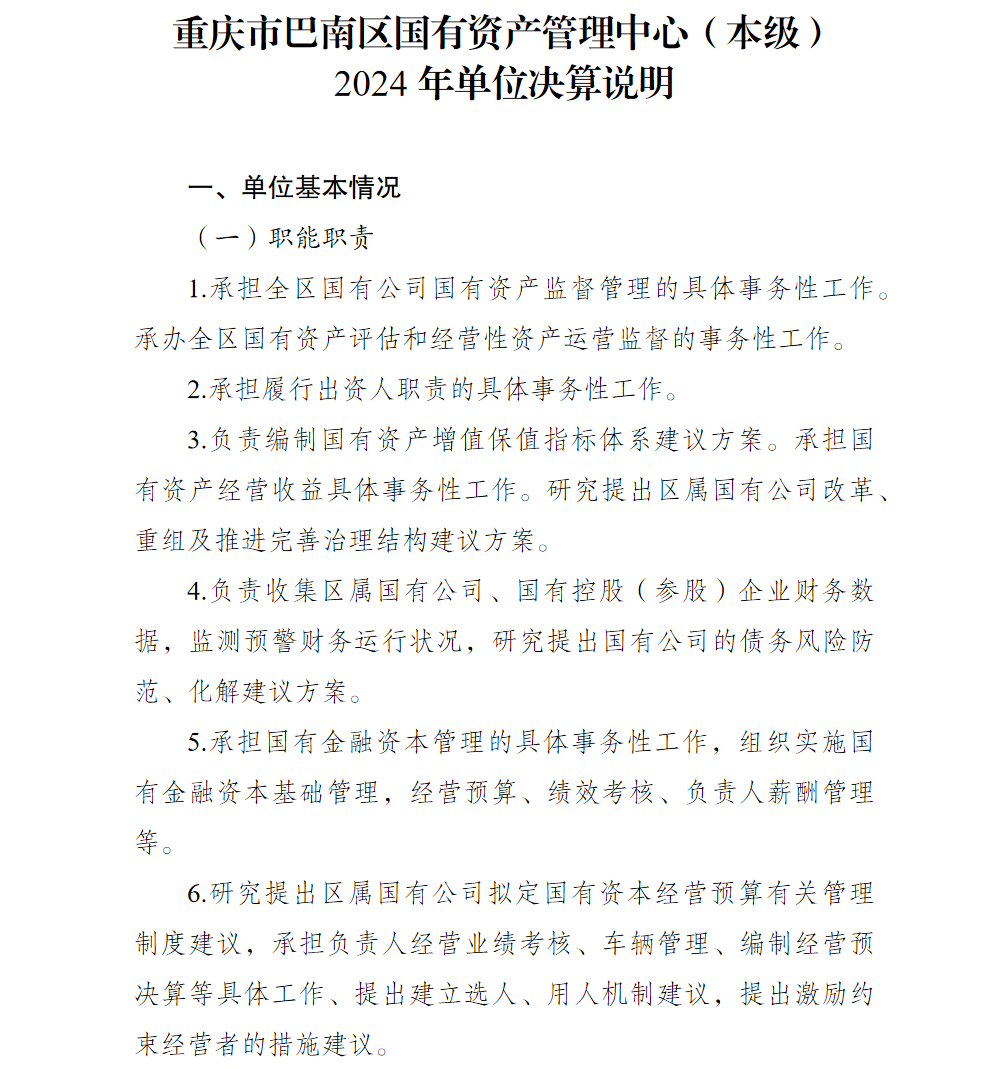 重庆市巴南区国有资产管理中心(本级)2024年单位决算说明及附表