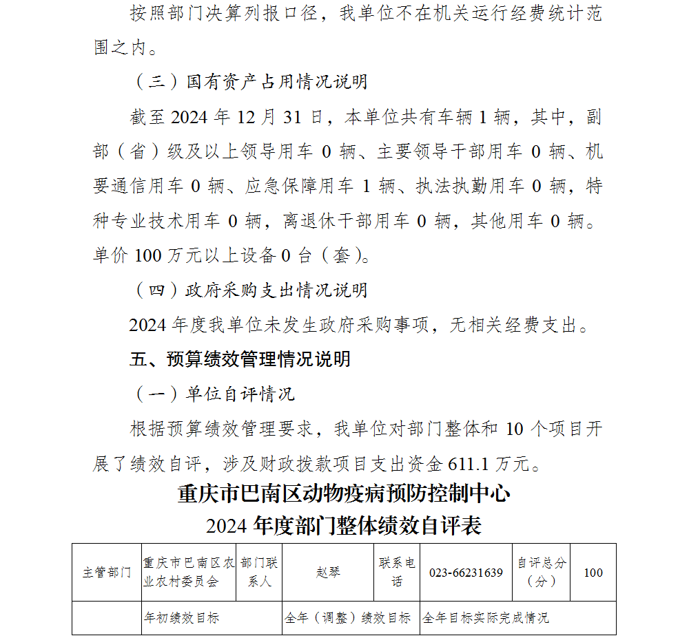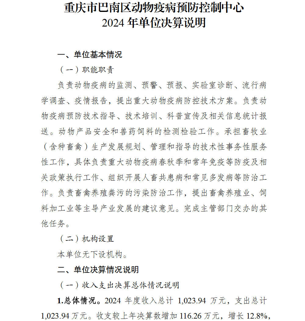重庆市巴南区动物疫病预防控制中心2024年单位决算说明