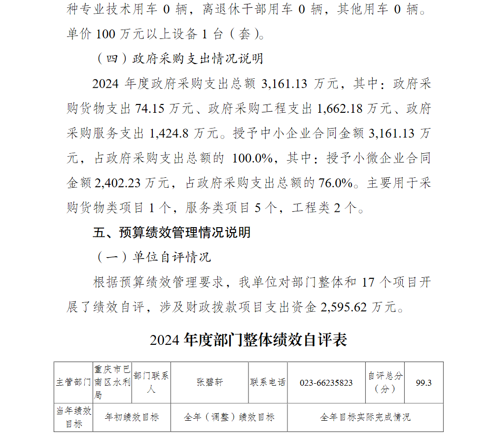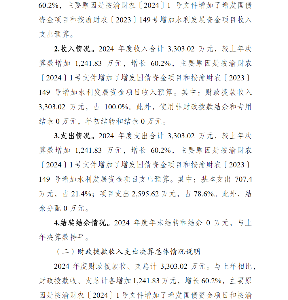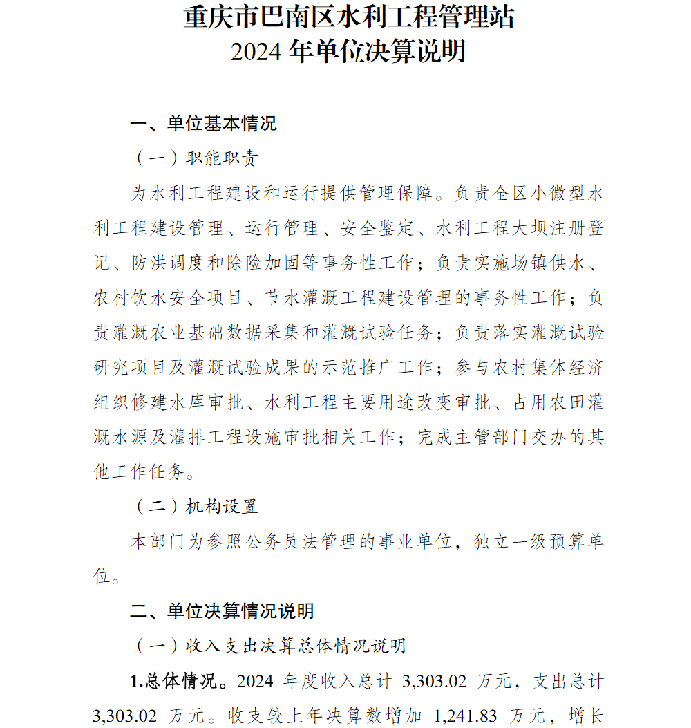 重庆市巴南区水利工程管理站2024年单位决算说明及附表