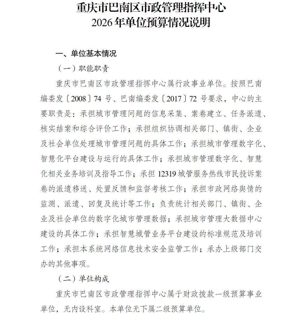 重庆市巴南区市政管理指挥中心2026年单位预算情况说明及附表.pdf