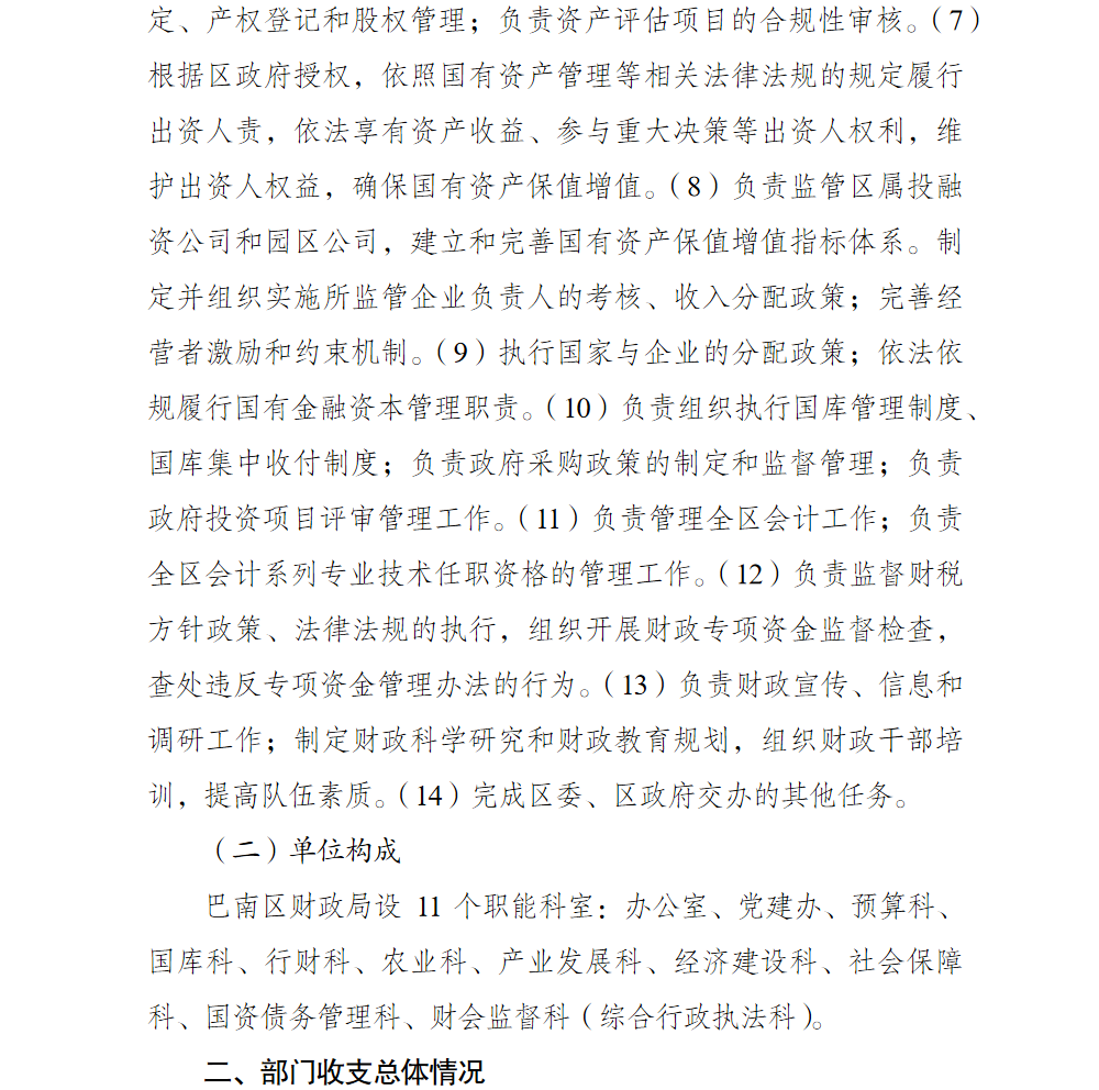 重庆市巴南区财政局2026年部门预算情况说明及附表