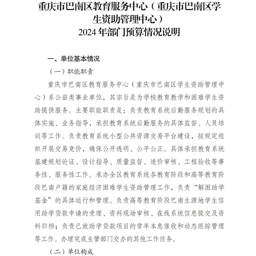 重庆市巴南区教育服务中心2024年部门预算情况说明