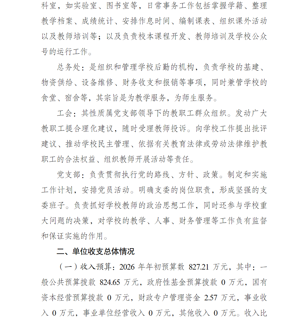 重庆市巴南区华南城初级中学校2026年单位预算情况说明