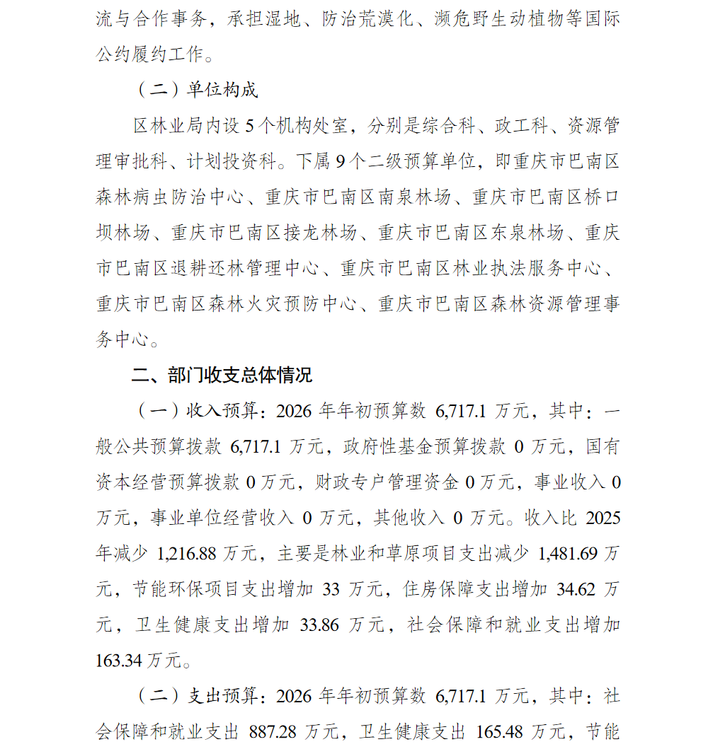 重庆市巴南区林业局2026年部门预算情况说明