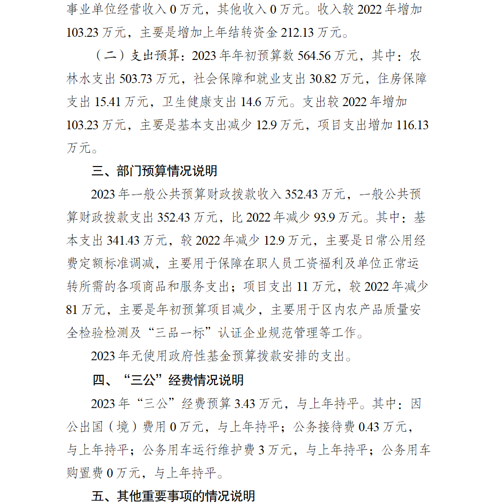 重庆市巴南区农产品质量安全中心2023年部门预算情况说明