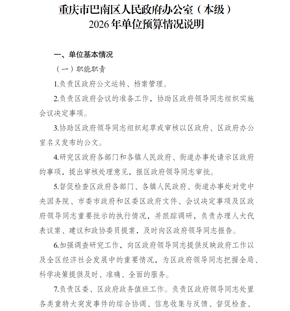 重庆市巴南区人民政府办公室(本级)2026年单位预算情况说明