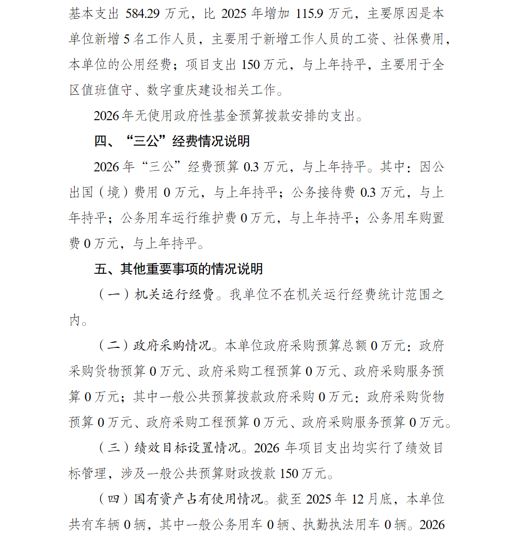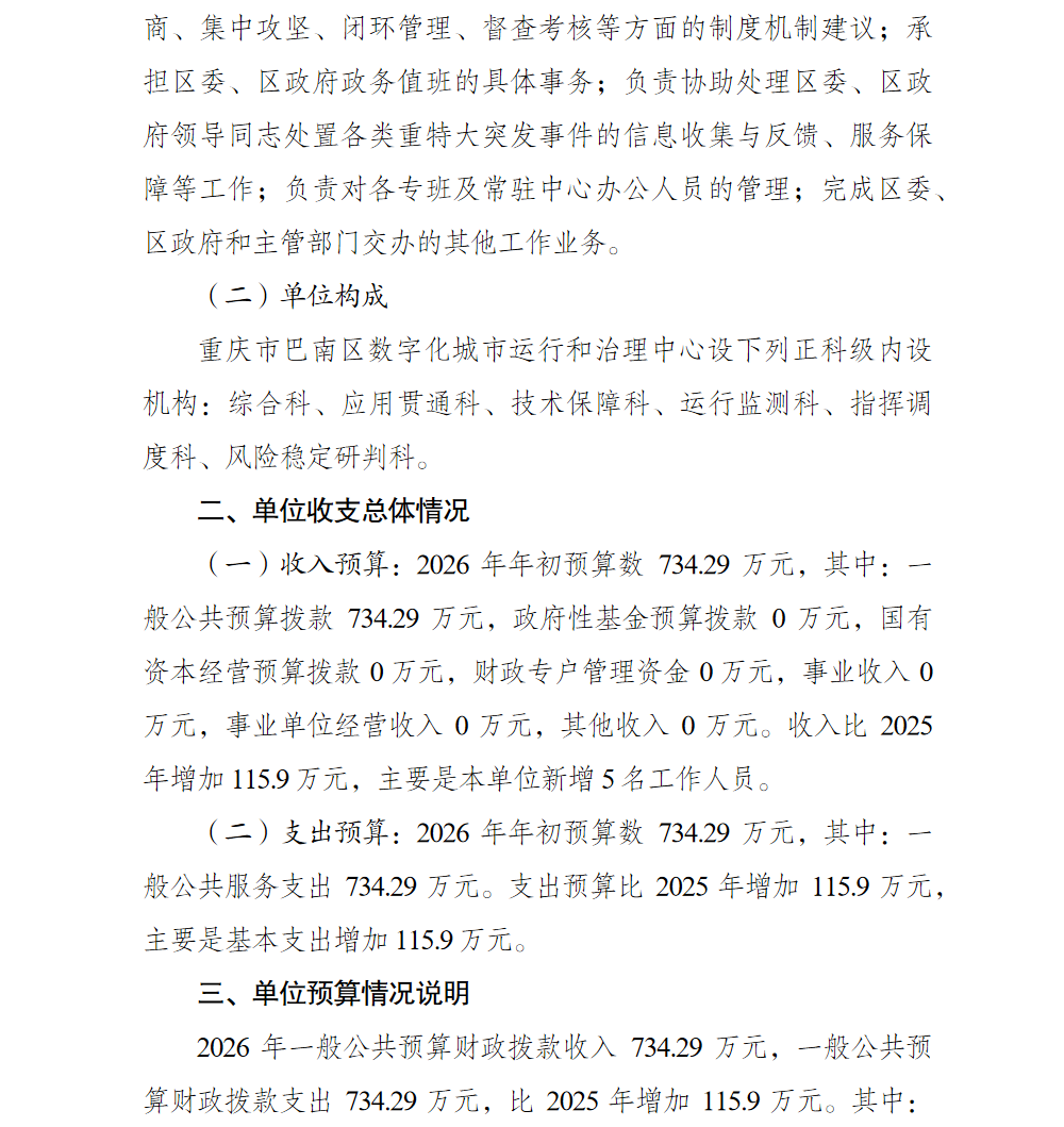 重庆市巴南区数字化城市运行和治理中心2026年单位预算情况说明