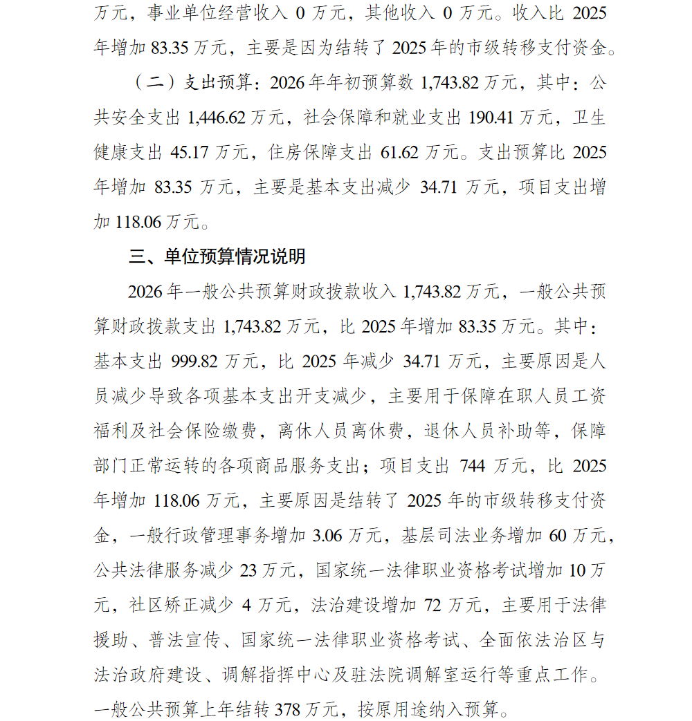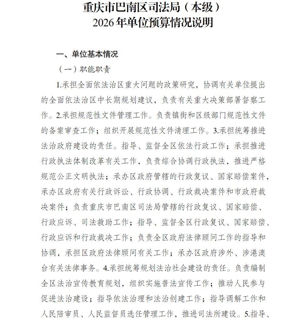 重庆市巴南区司法局(本级) 2026 年单位预算情况说明