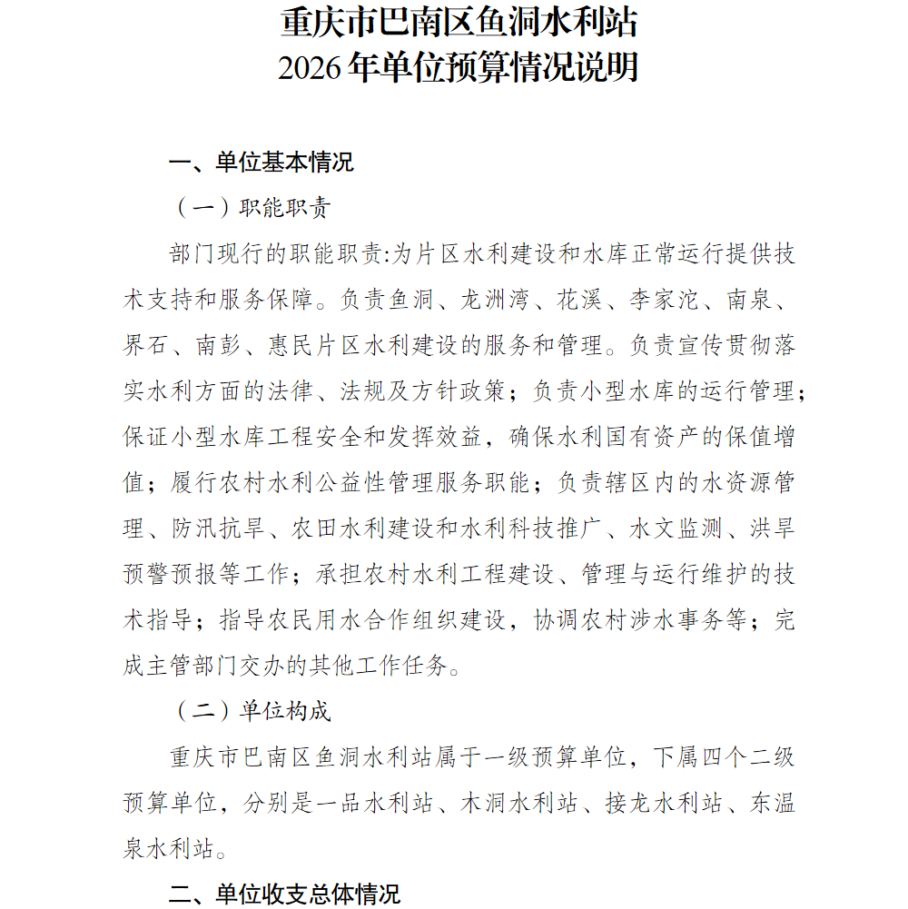 重庆市巴南区鱼洞水利站2026年单位预算情况说明