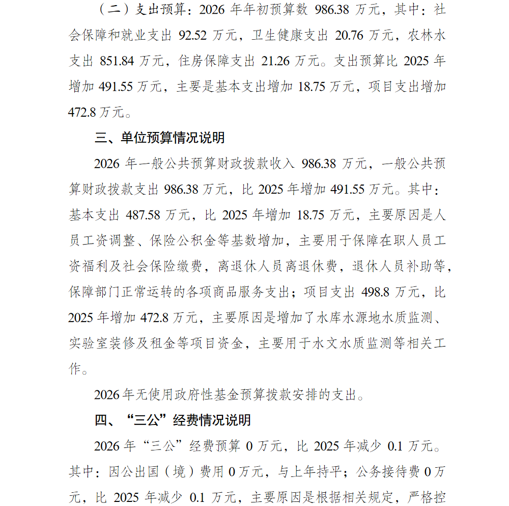 重庆市巴南区水文水质监测管理站2026年单位预算情况说明