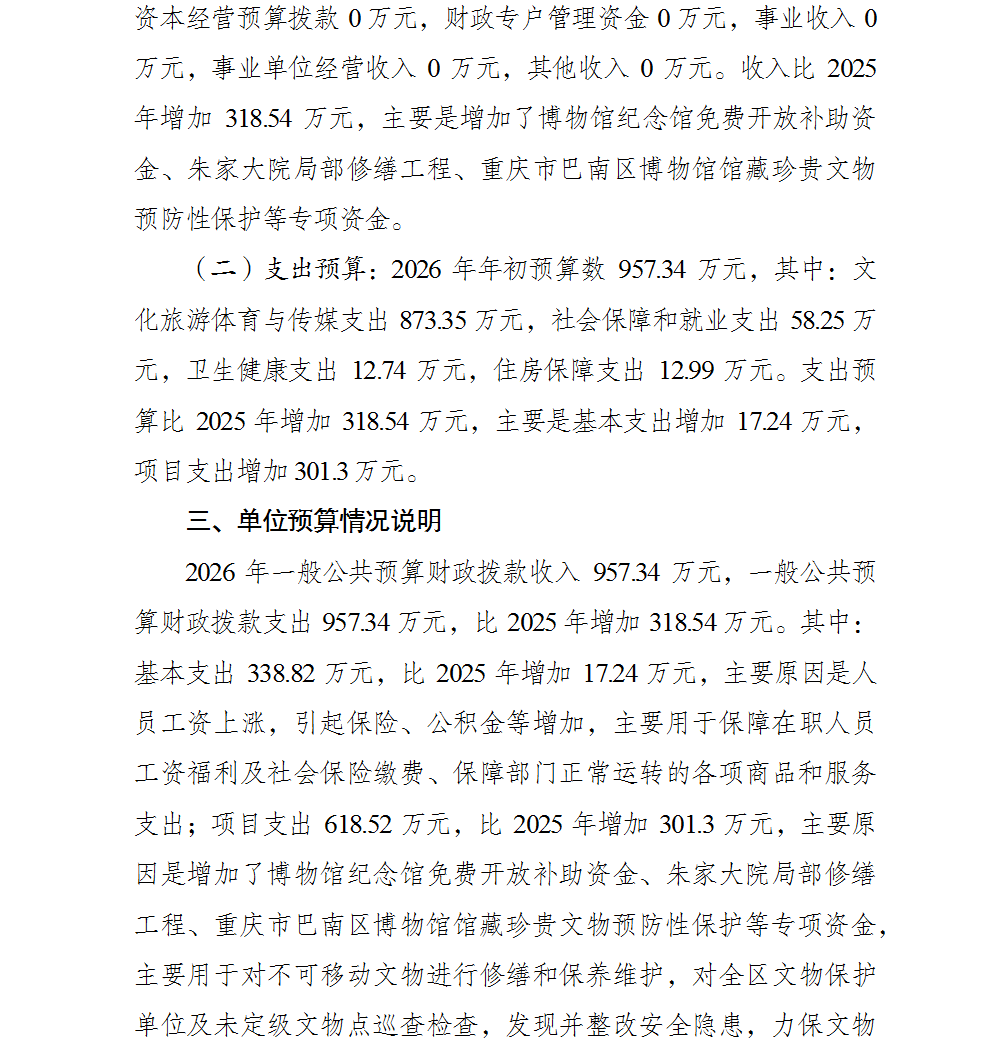 重庆市巴南区文化遗产保护中心2026年部门预算情况说明