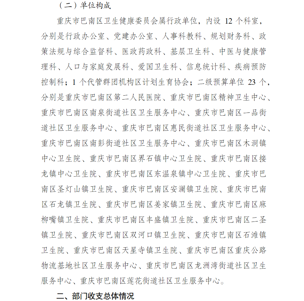 重庆市巴南区卫生健康委员会2026预算情况说明