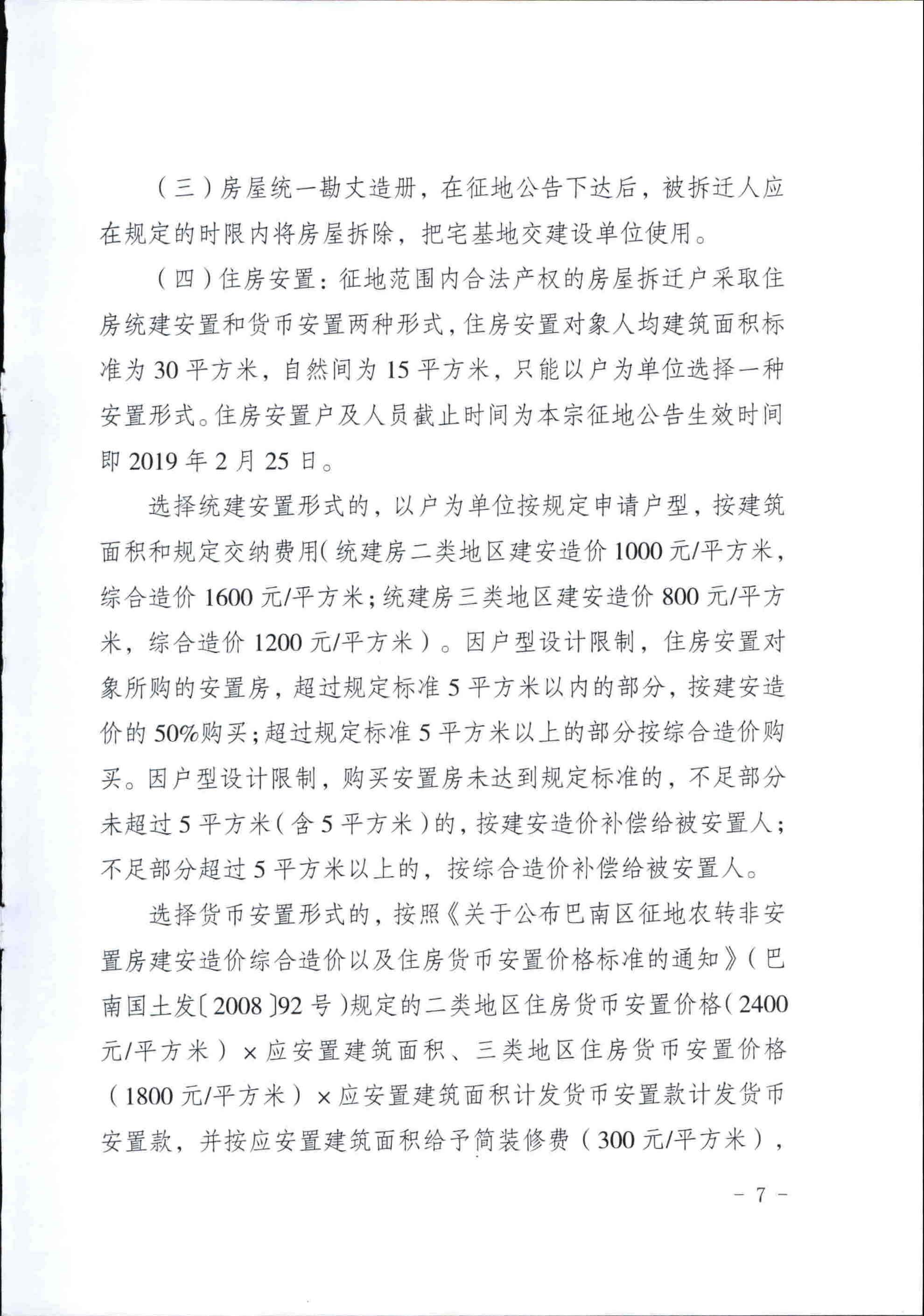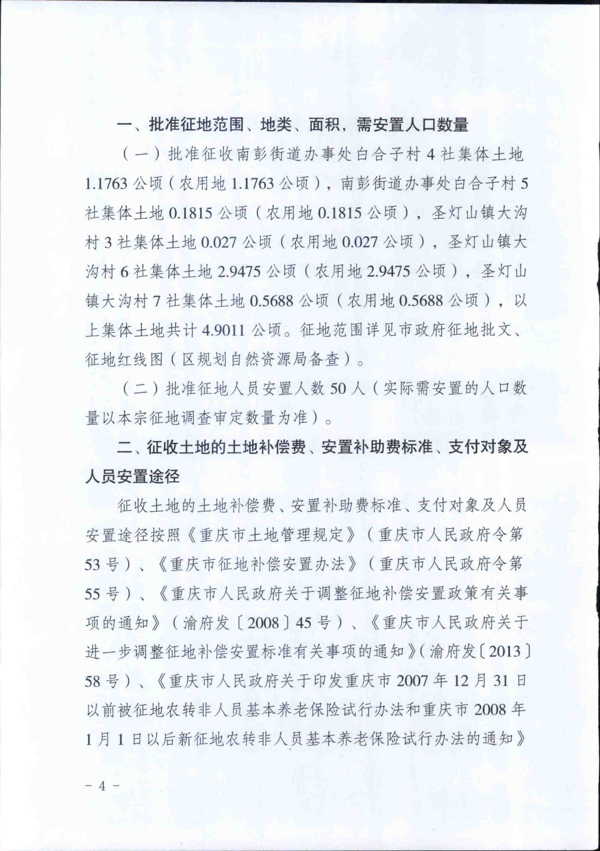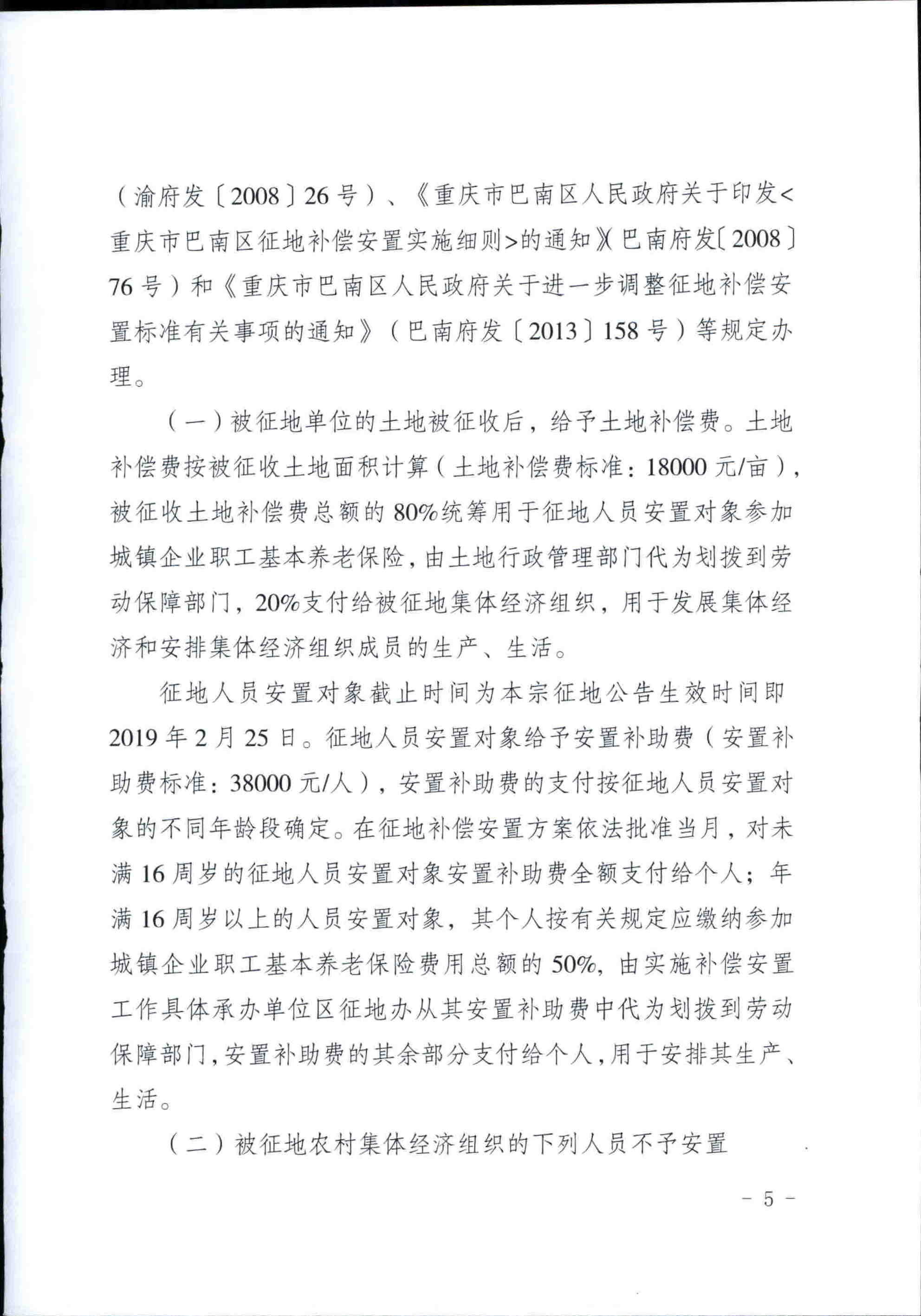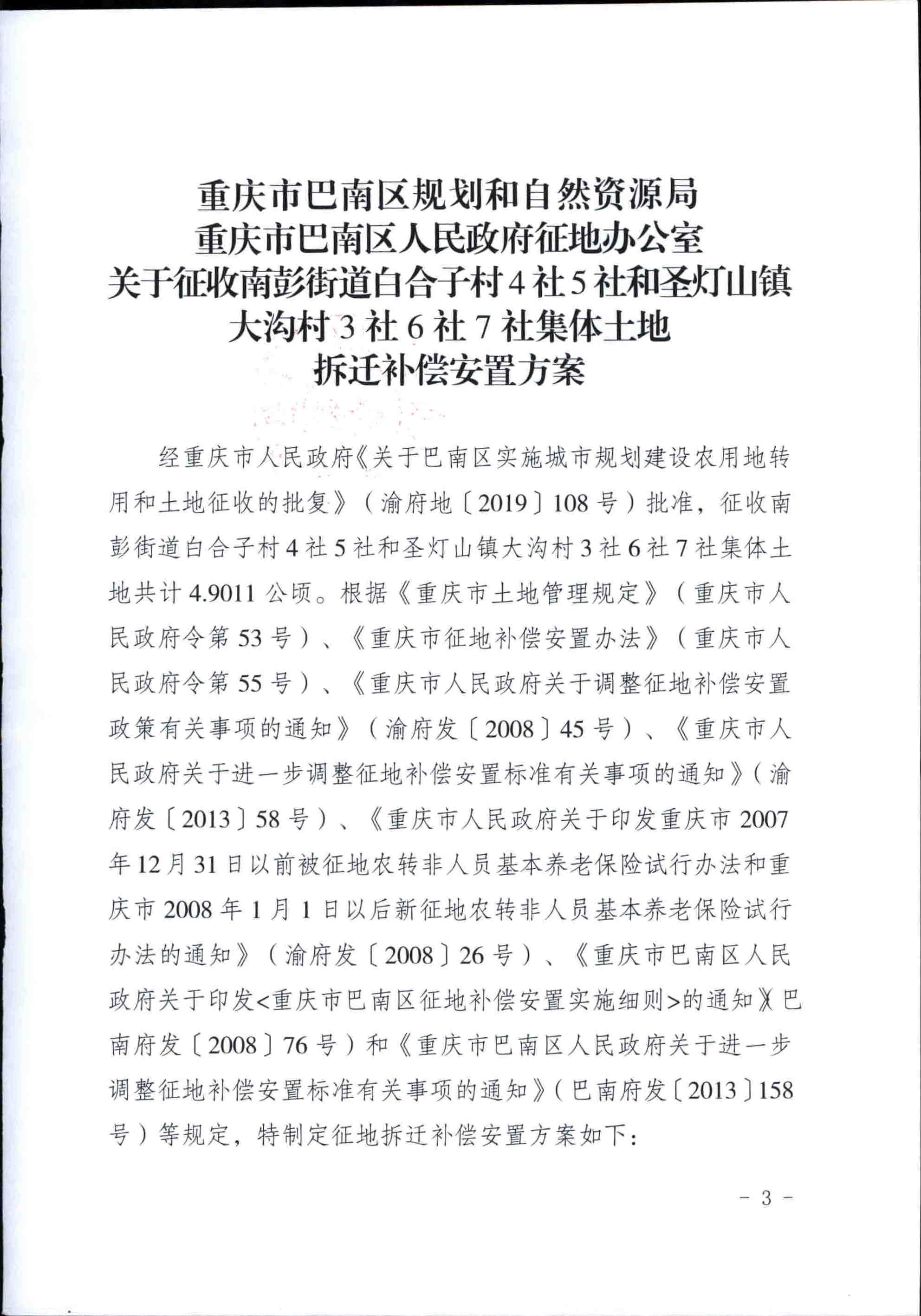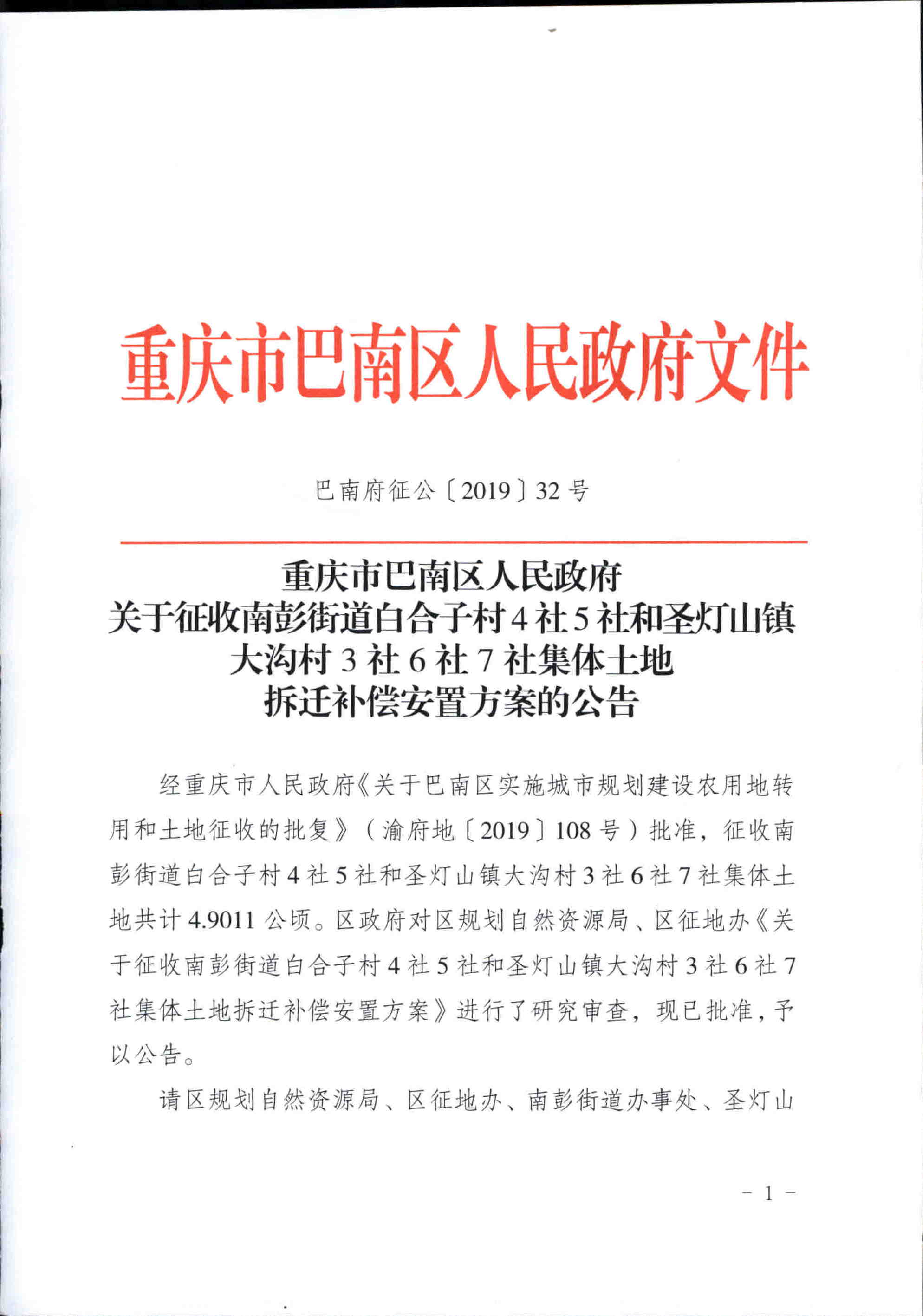 关于征收南彭白合子村4、5社等集体土地拆迁补偿安置方案的公告(巴南府征公〔2019〕32号)